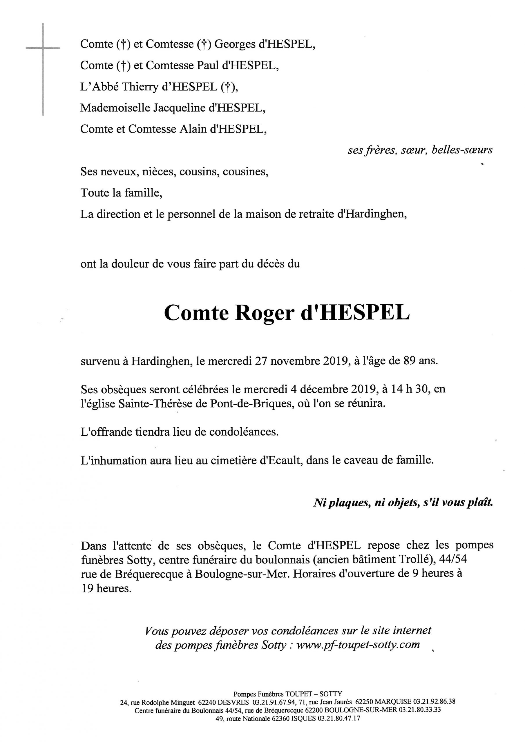 Comte Roger d’ HESPEL