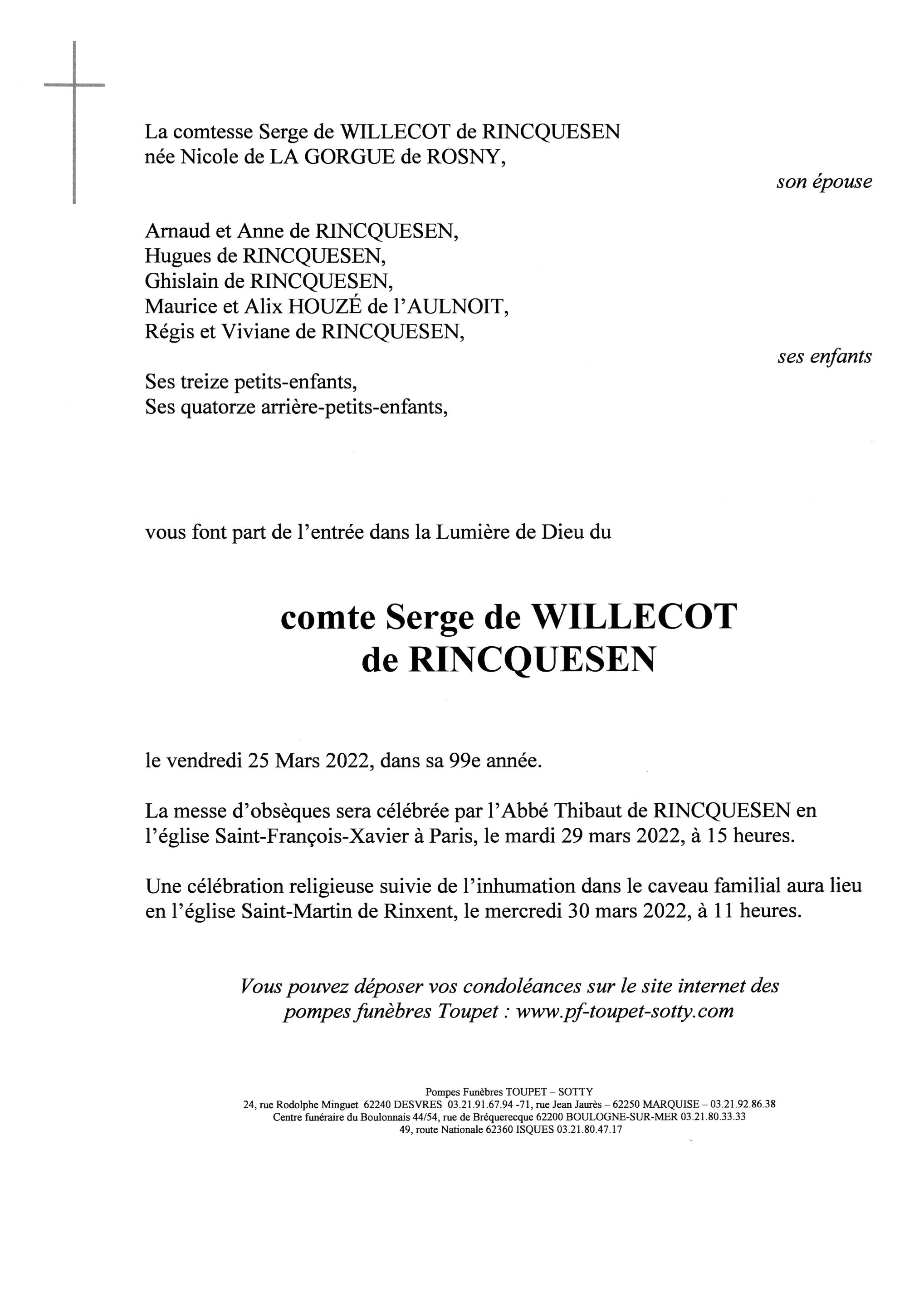 comte Serge de WILLECOT de RINCQUESEN