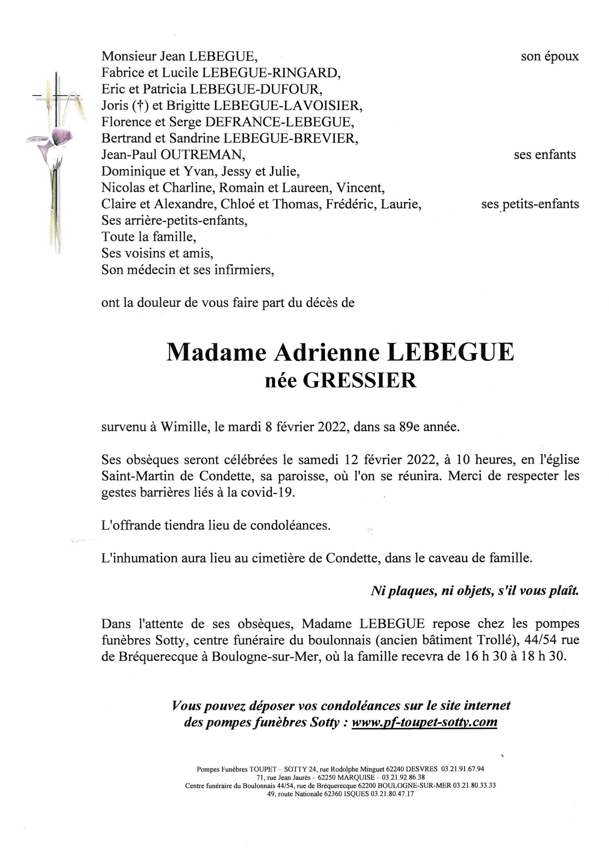 Madame Adrienne LEBEGUE