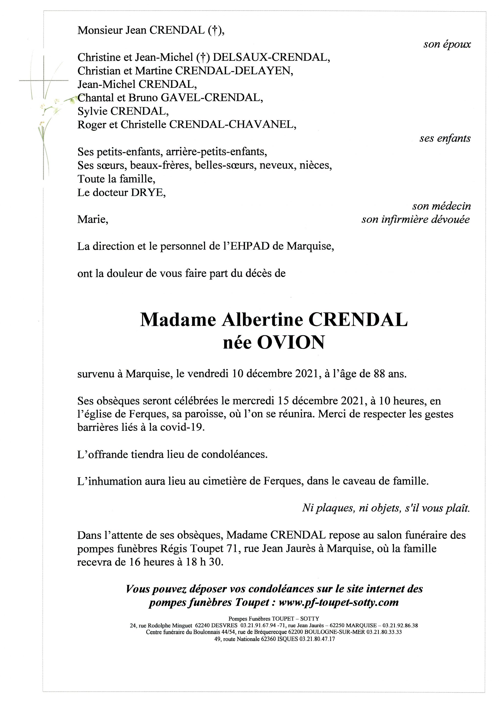 Madame Albertine CRENDAL