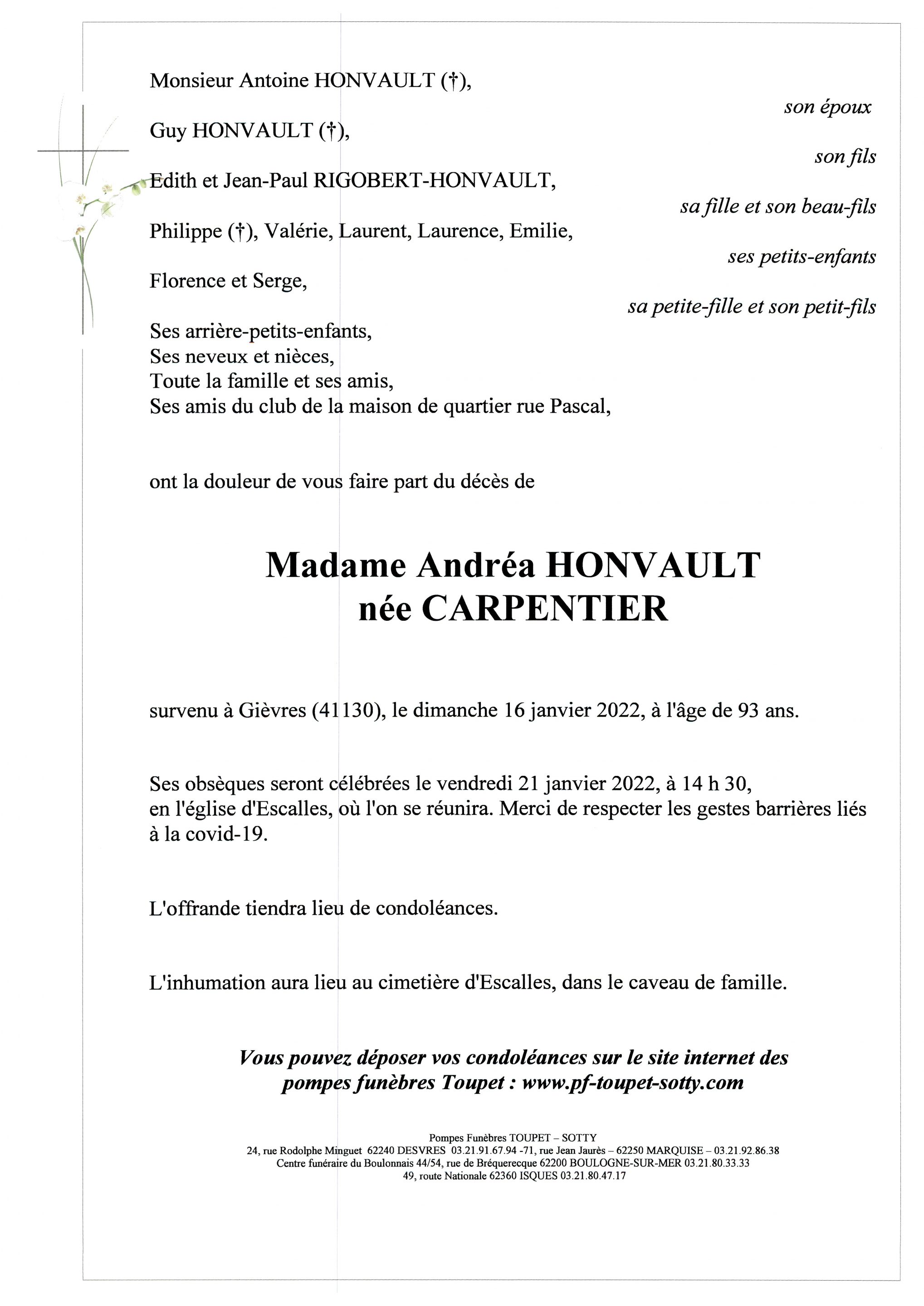 Madame Andréa HONVAULT