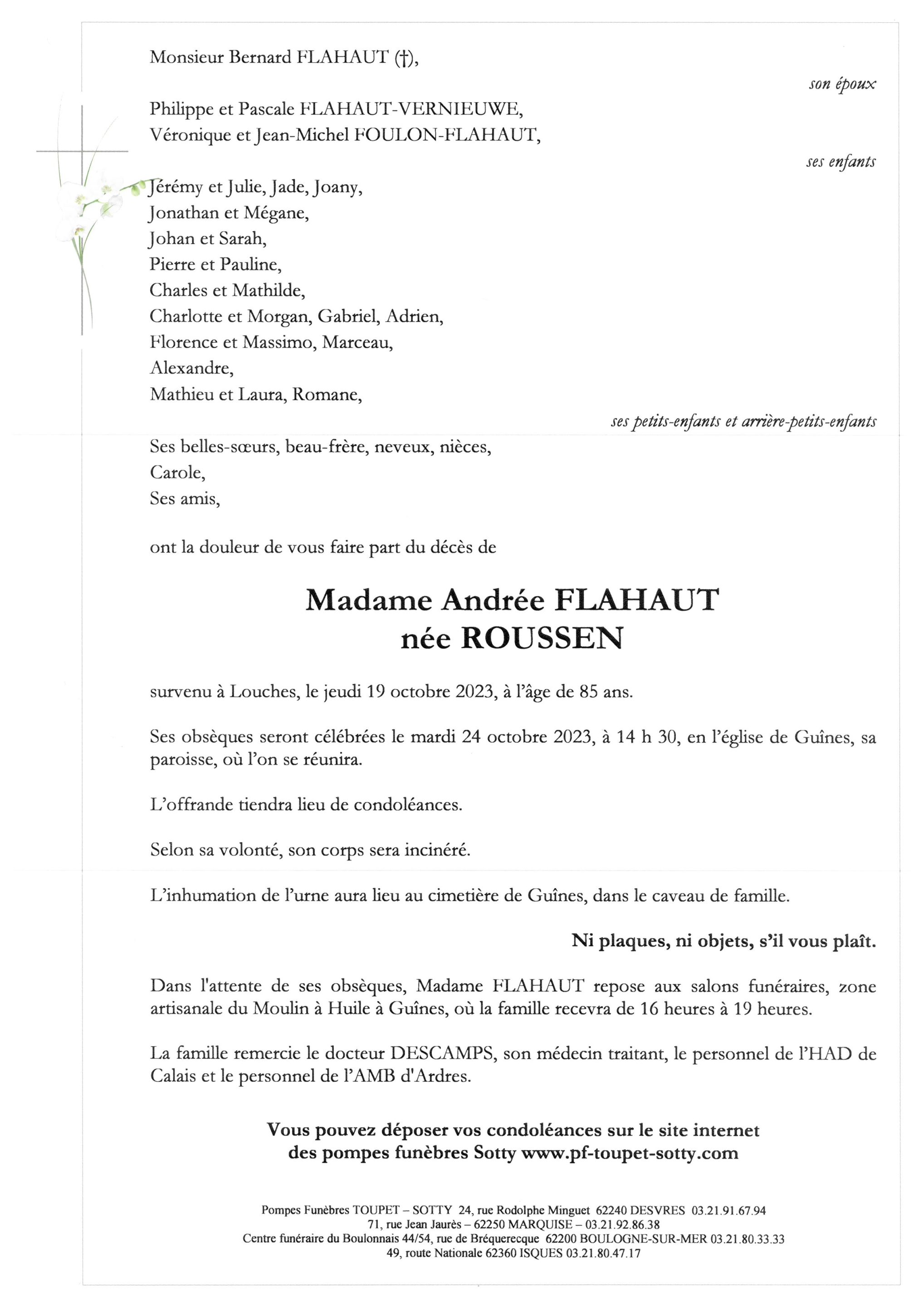 Madame Andrée FLAHAUT