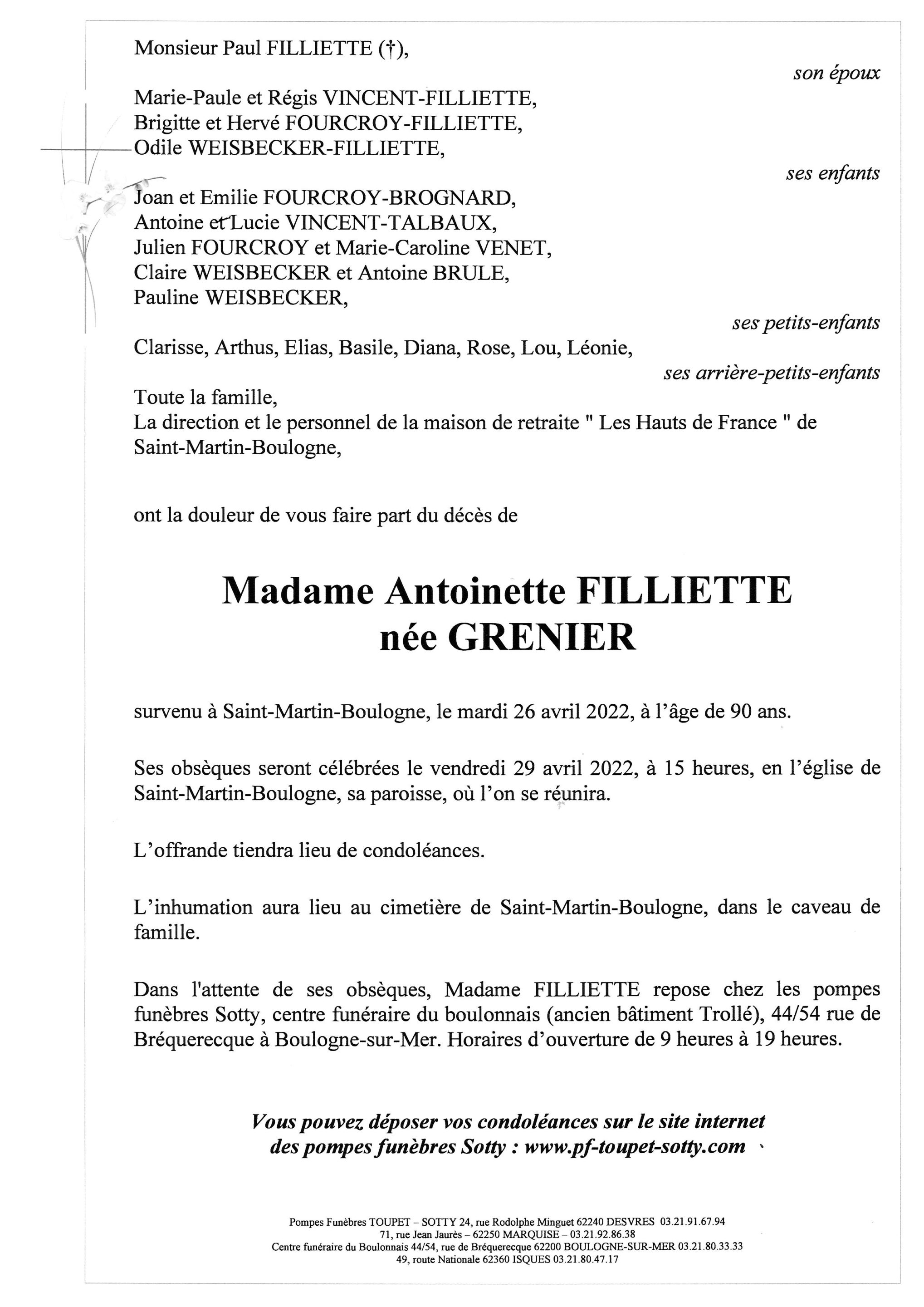 Madame Antoinette FILLIETTE