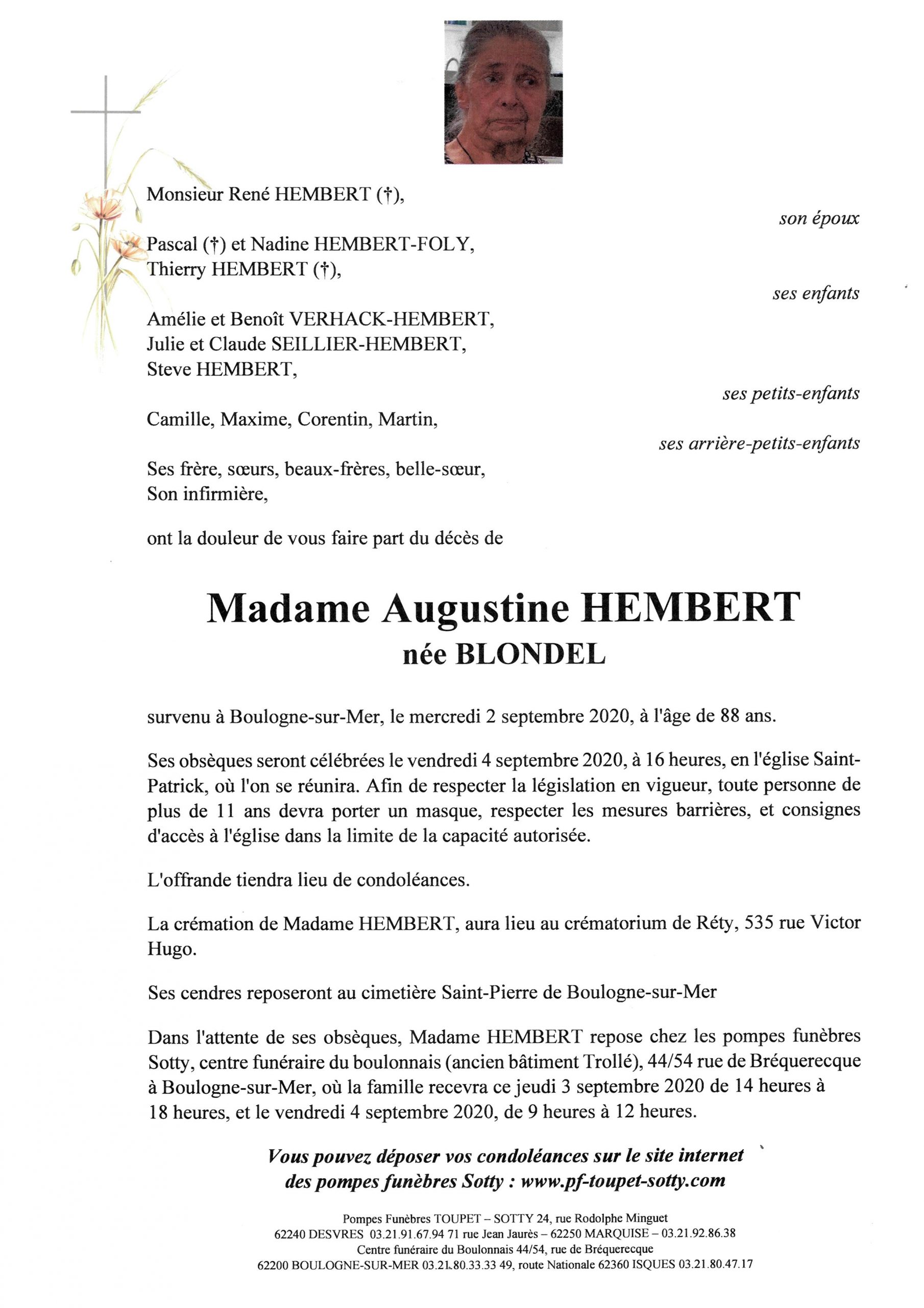 Madame Augustine HEMBERT