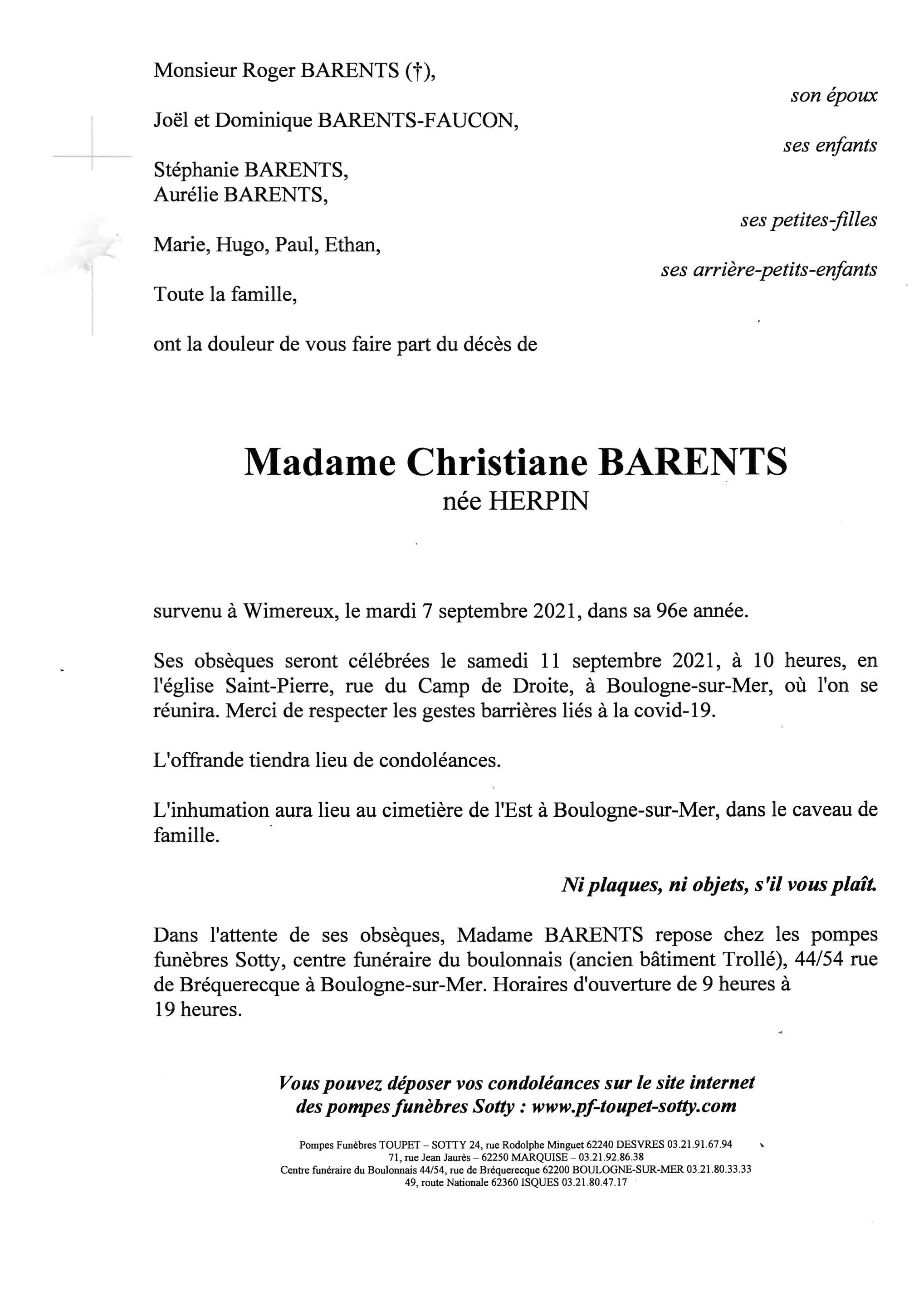 Madame Christiane BARENTS