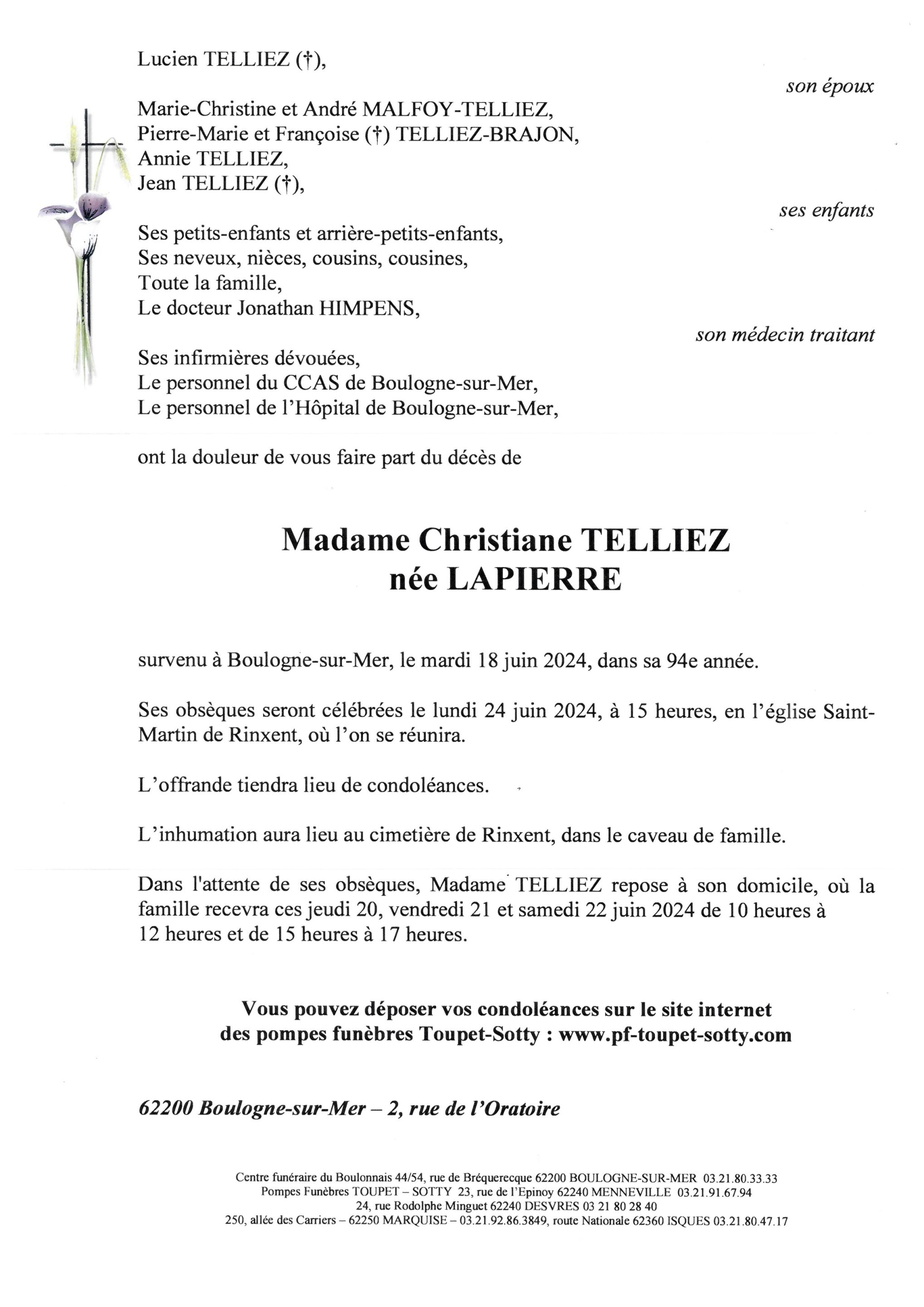 Madame Christiane TELLIEZ
