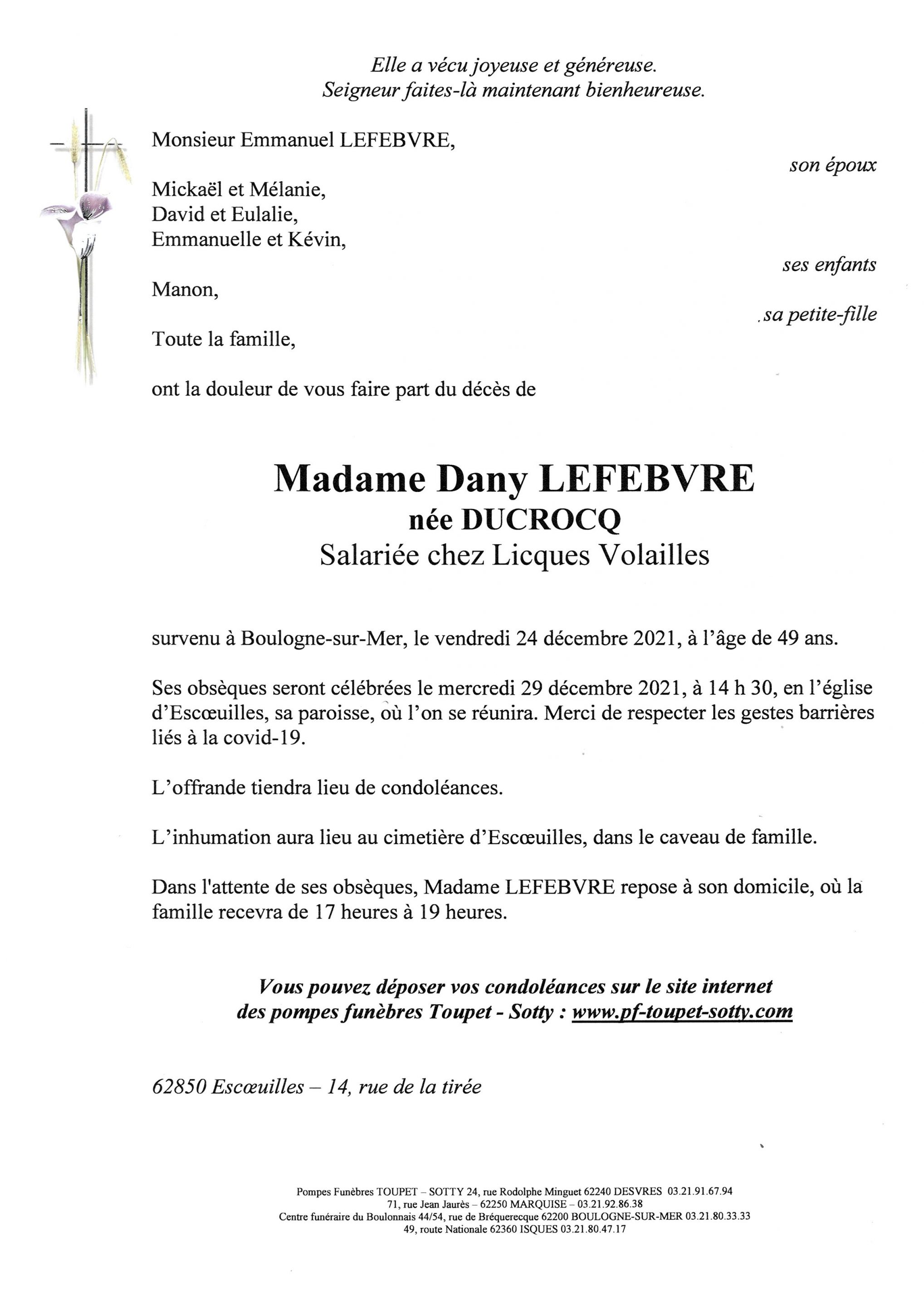 Madame Dany LEFEBVRE
