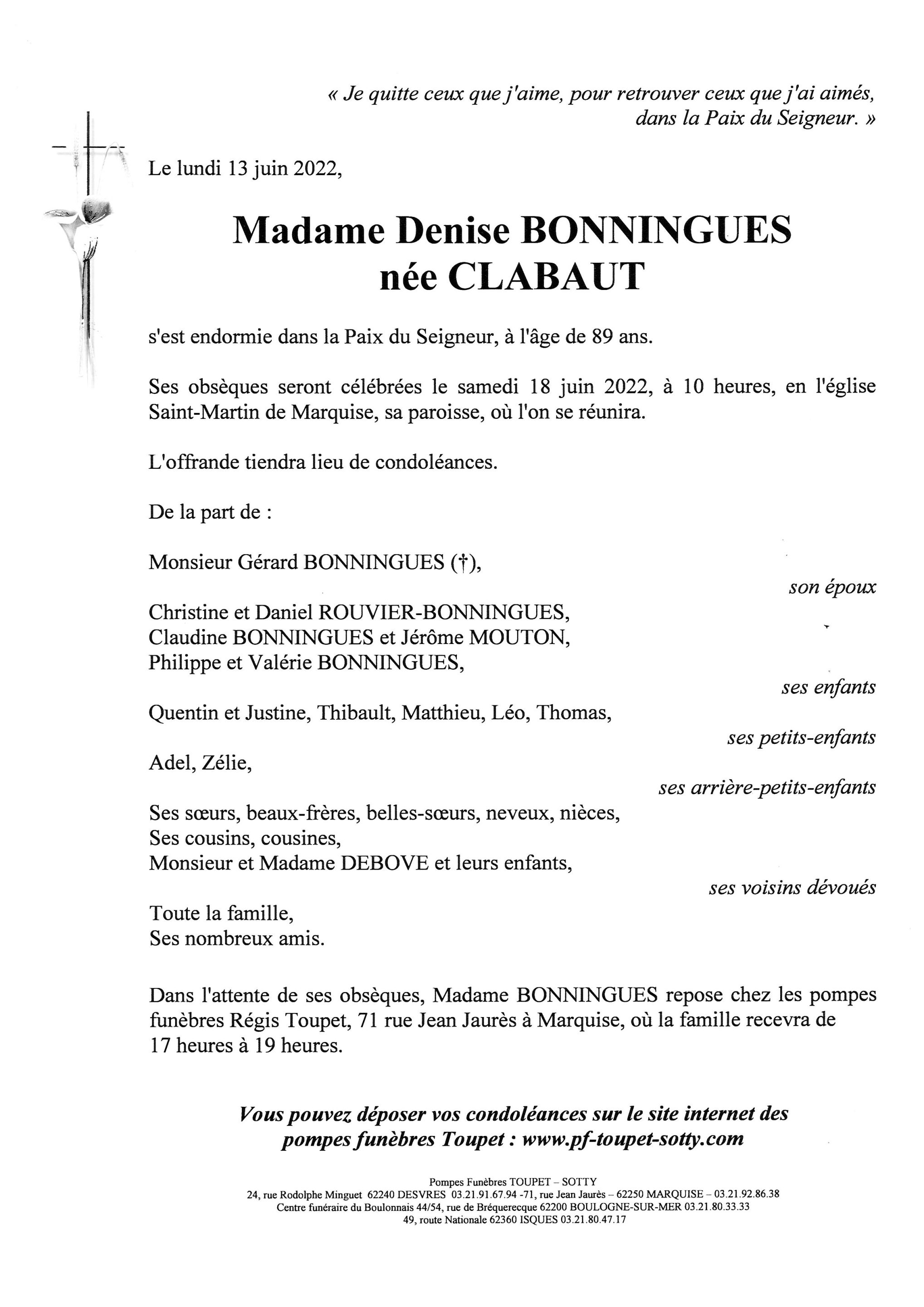 Madame Denise BONNINGUES