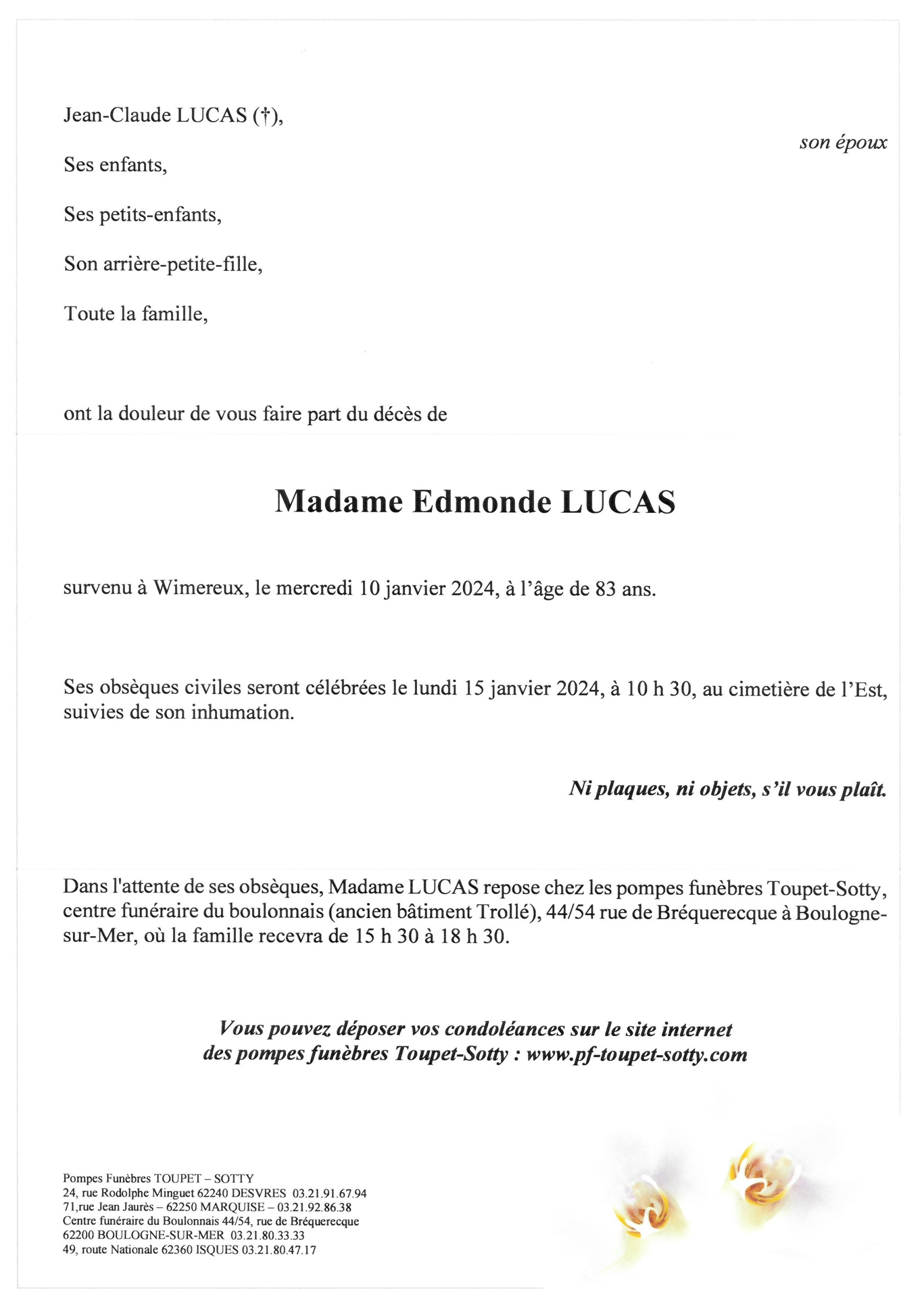 Madame Edmonde LUCAS