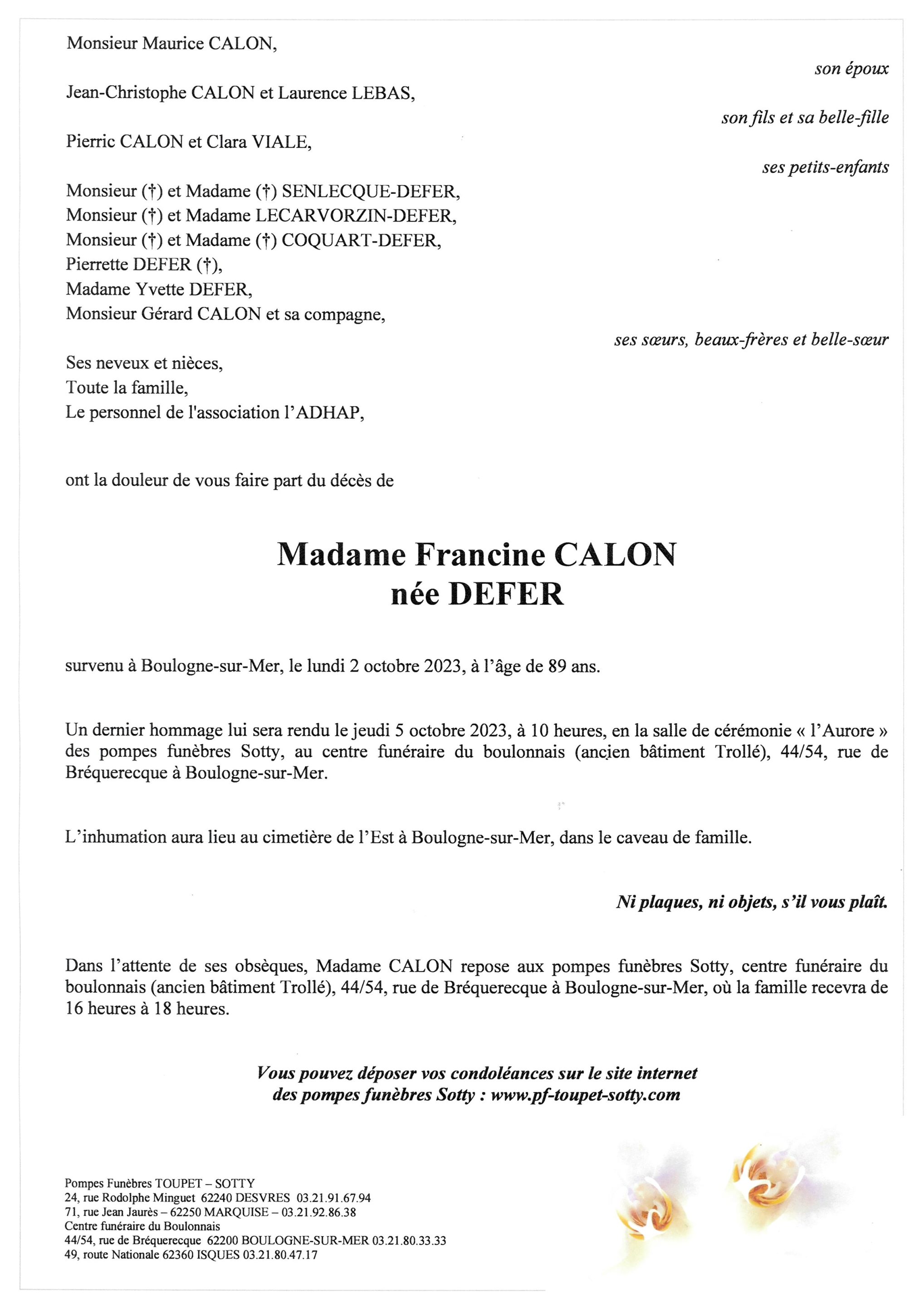 Madame Francine CALON