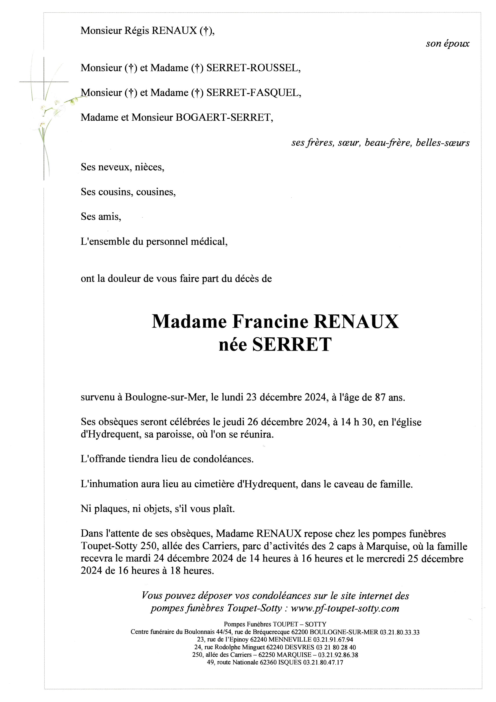 Madame Francine RENAUX