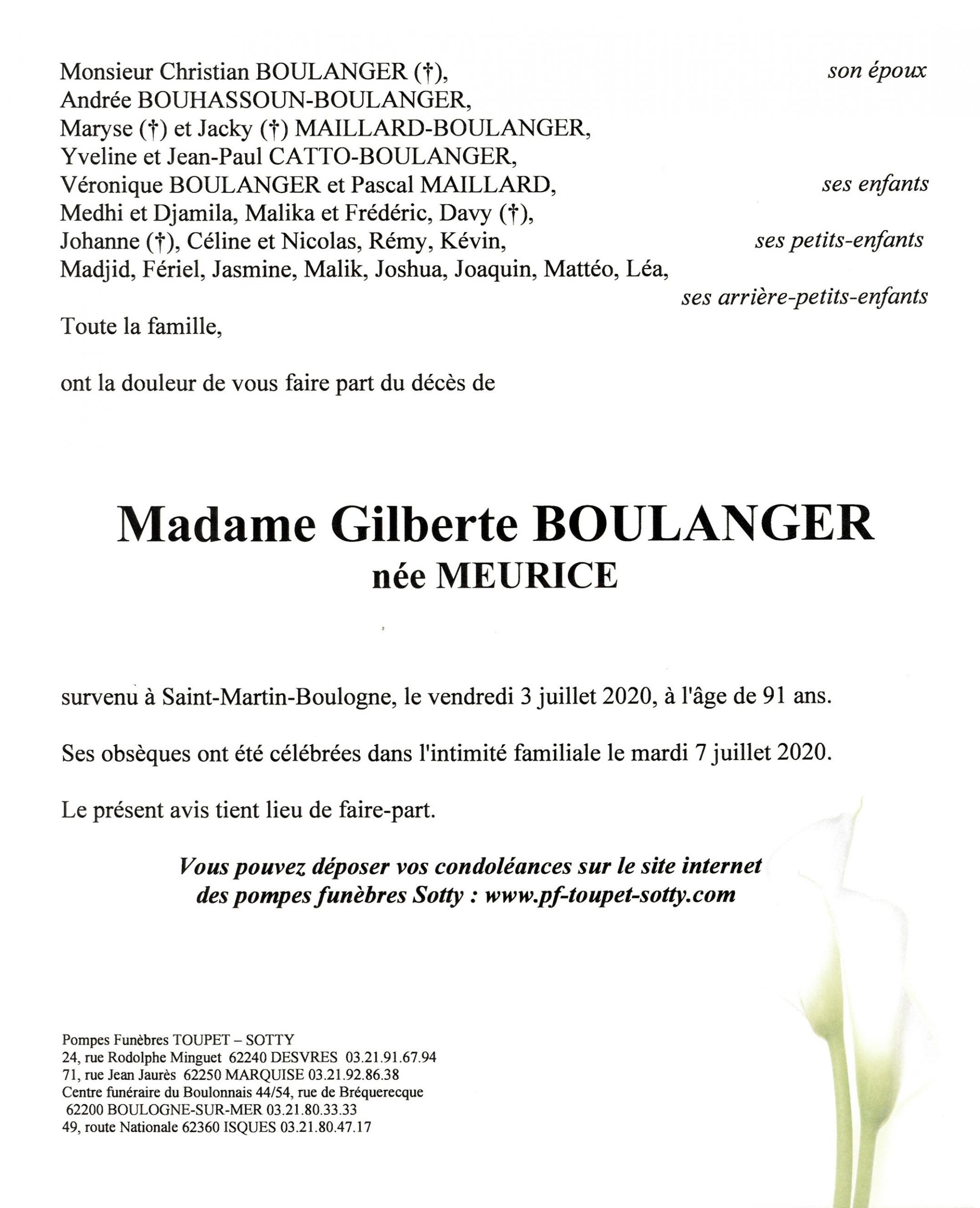 Madame Gilberte BOULANGER