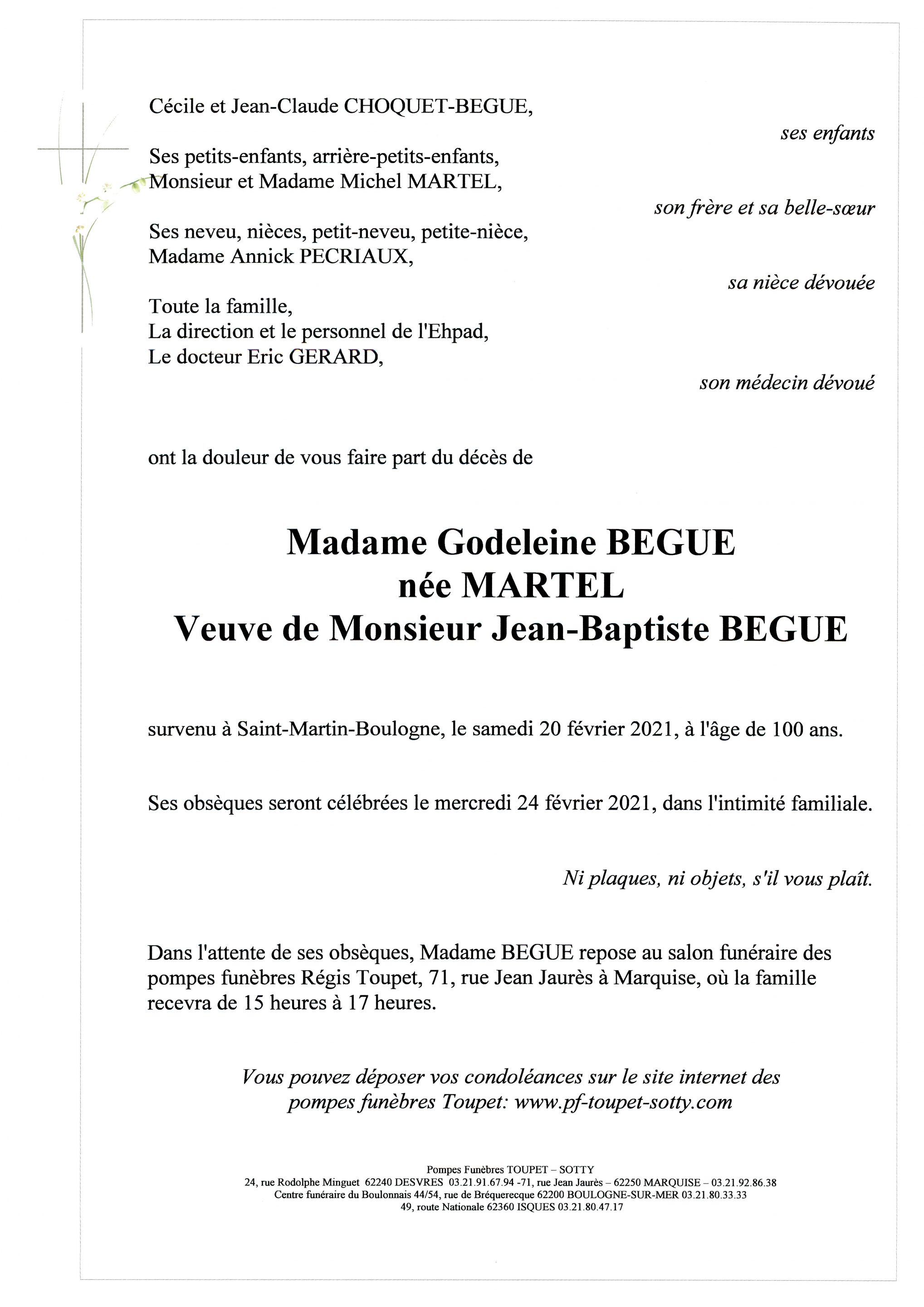 Madame Godeleine BEGUE