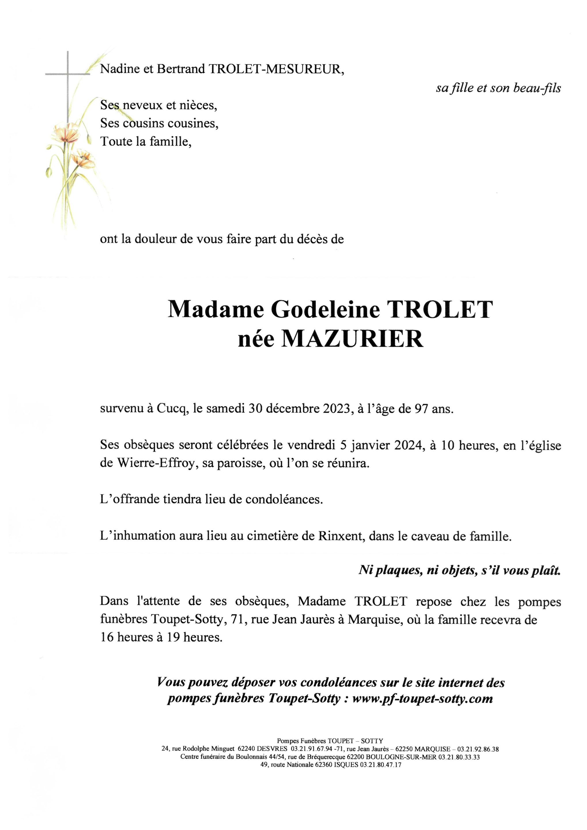 Madame Godeleine TROLET