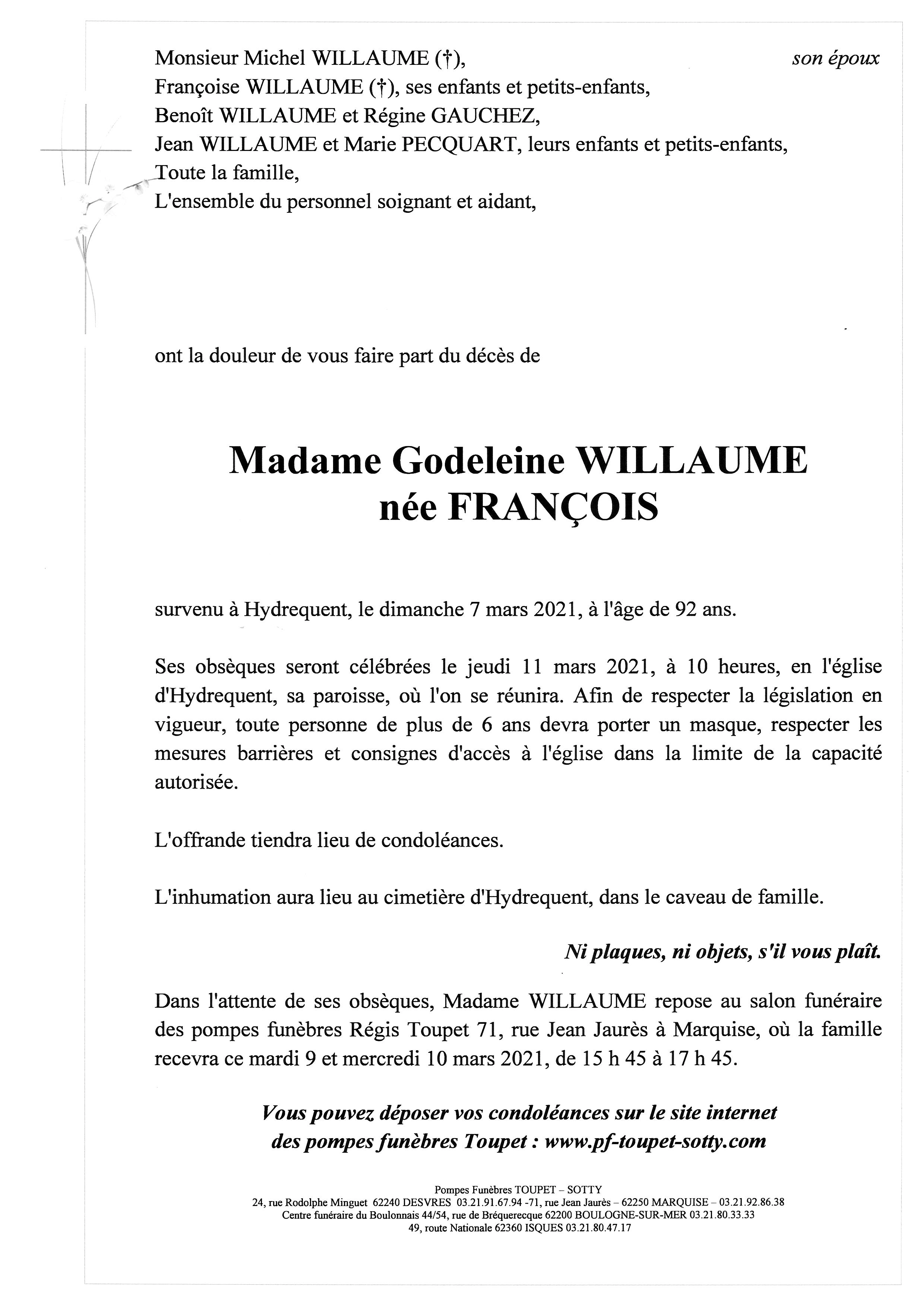 Madame Godeleine WILLAUME