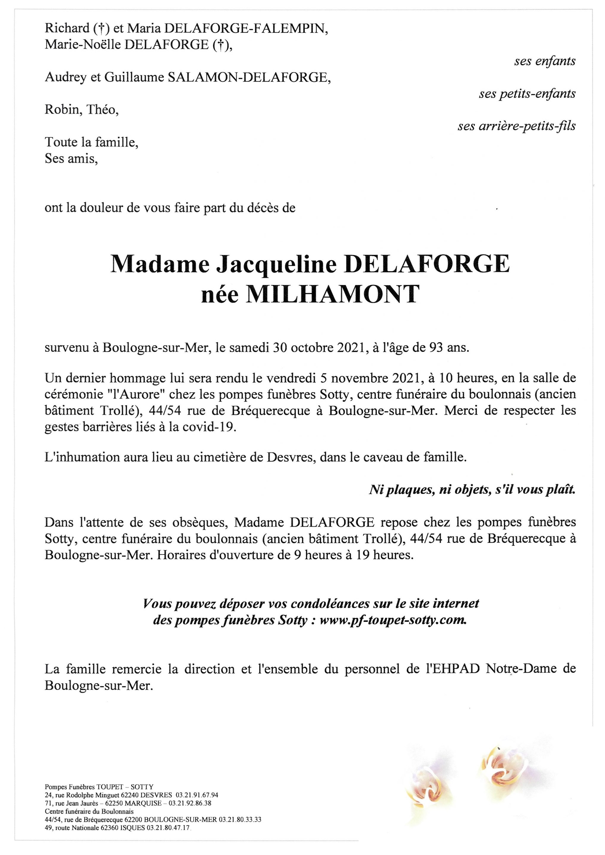 Madame Jacqueline DELAFORGE