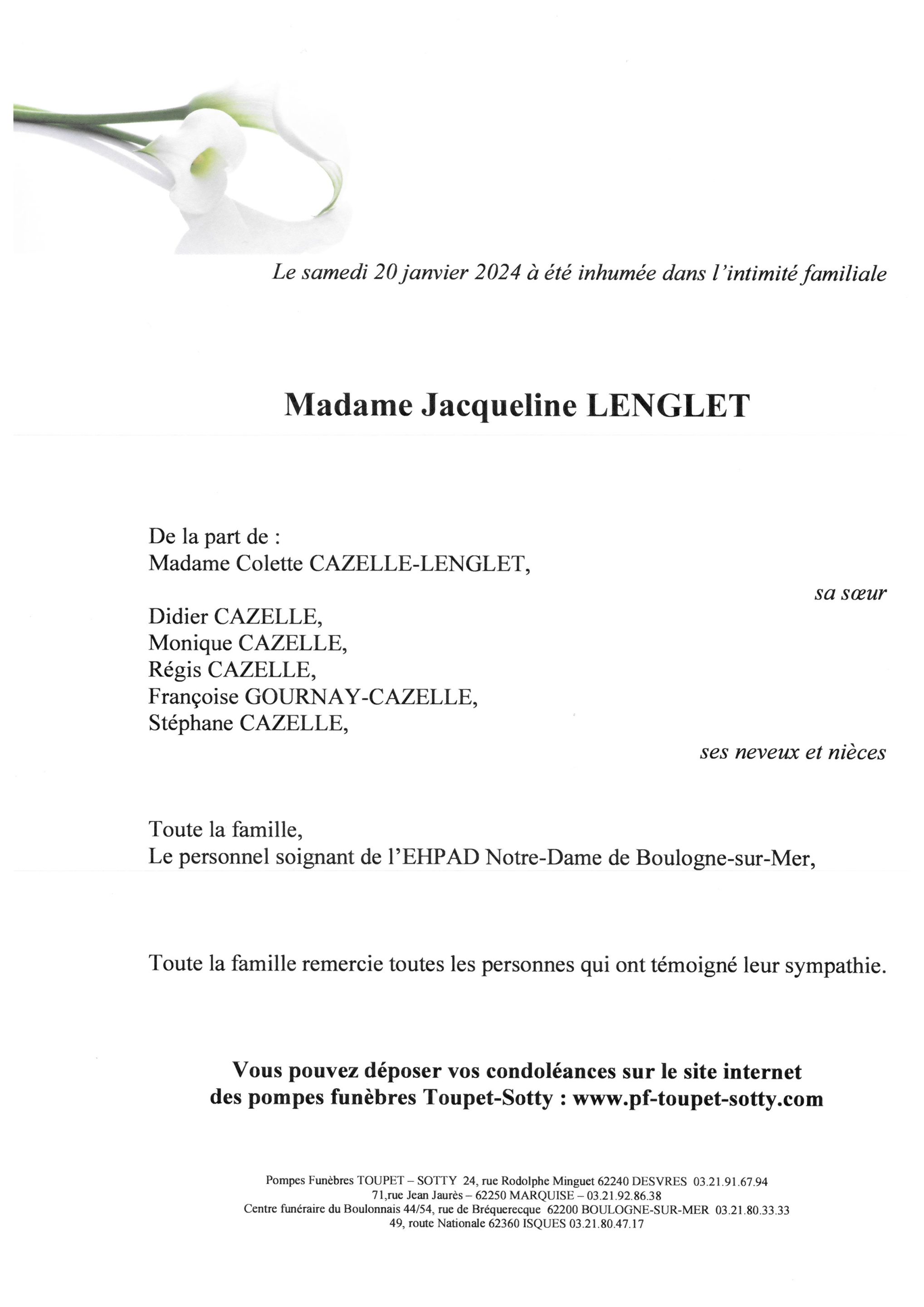 Madame Jacqueline LENGLET