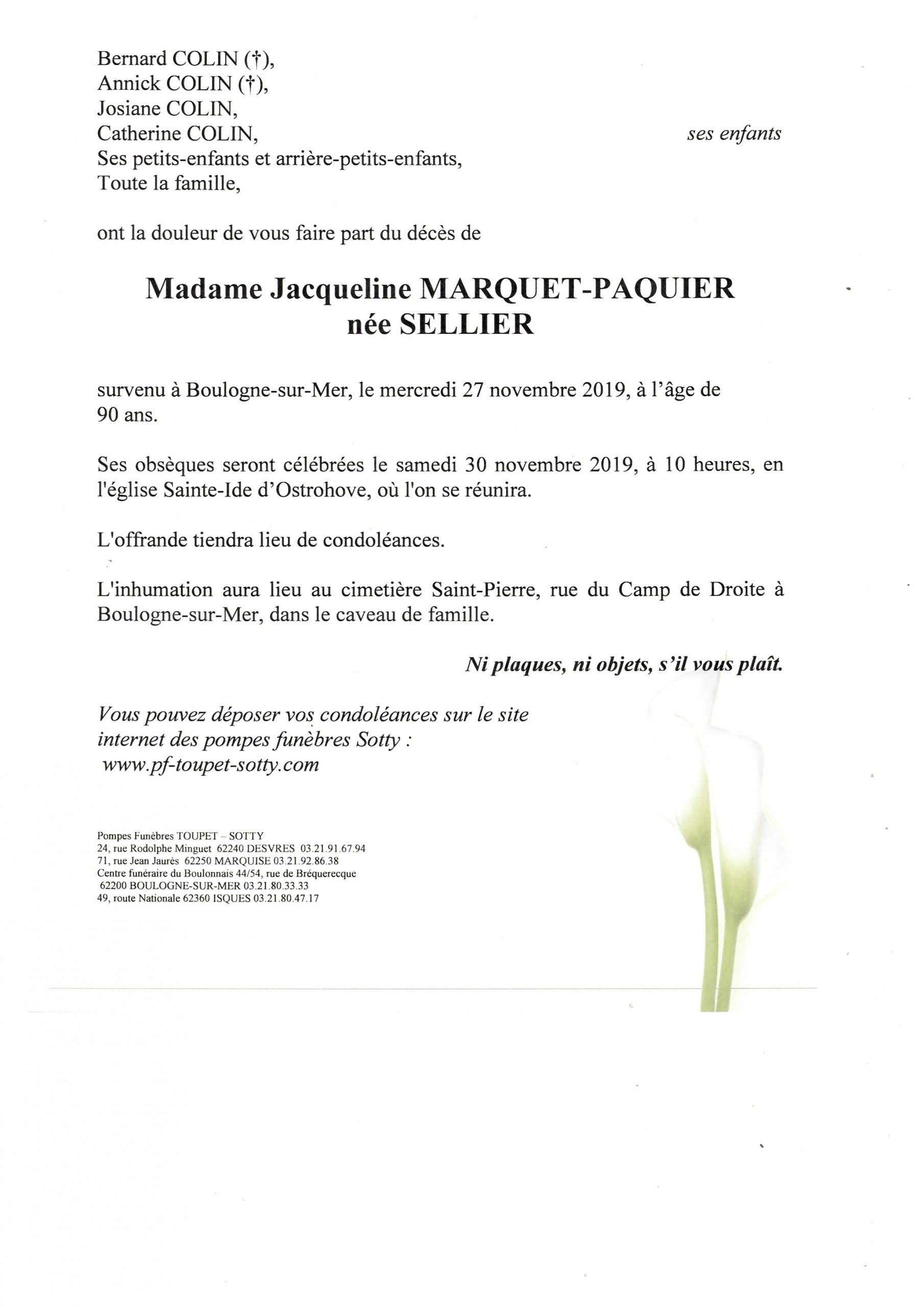 Madame Jacqueline MARQUET-PAQUIER
