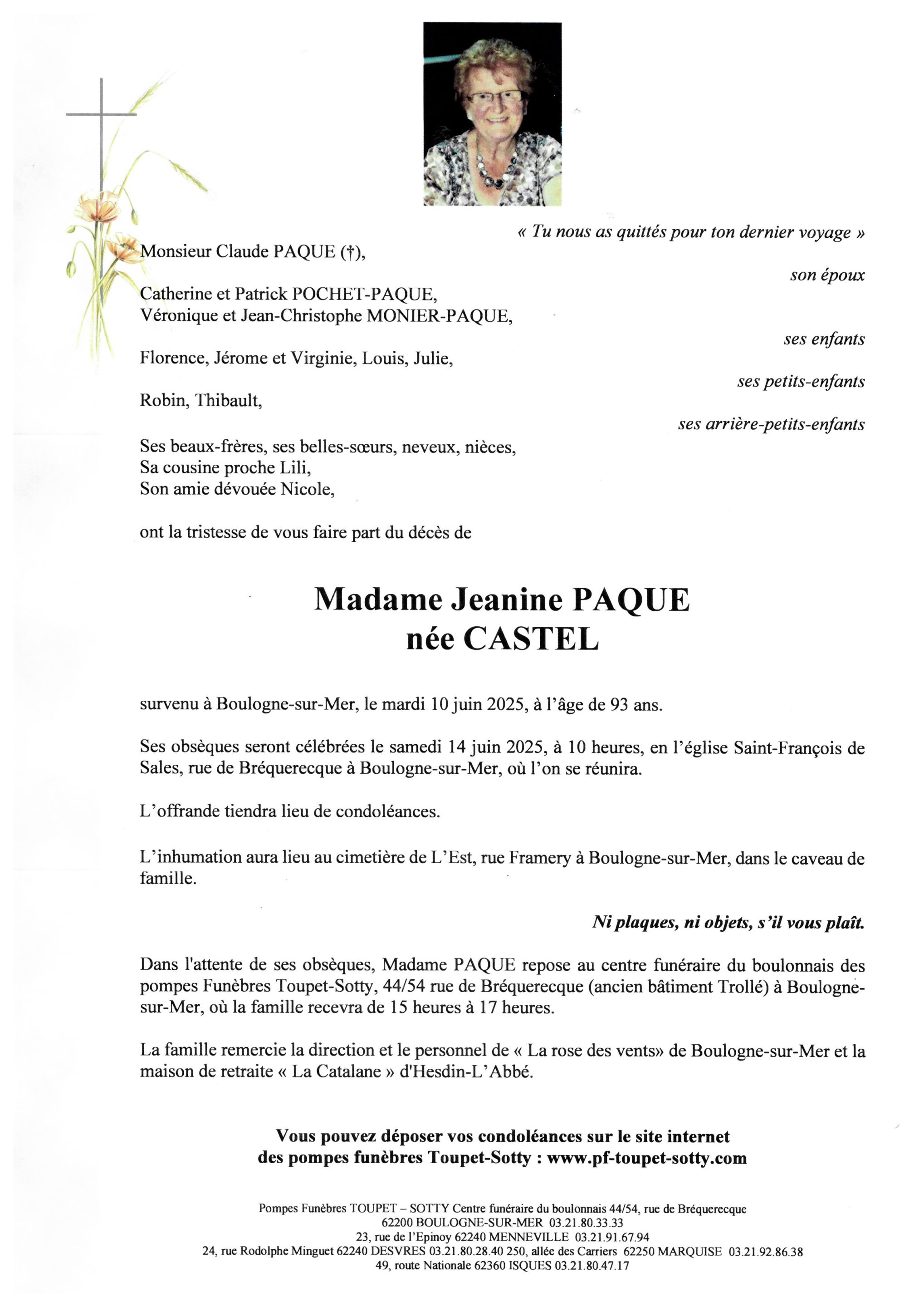 Madame Jeanine PAQUE