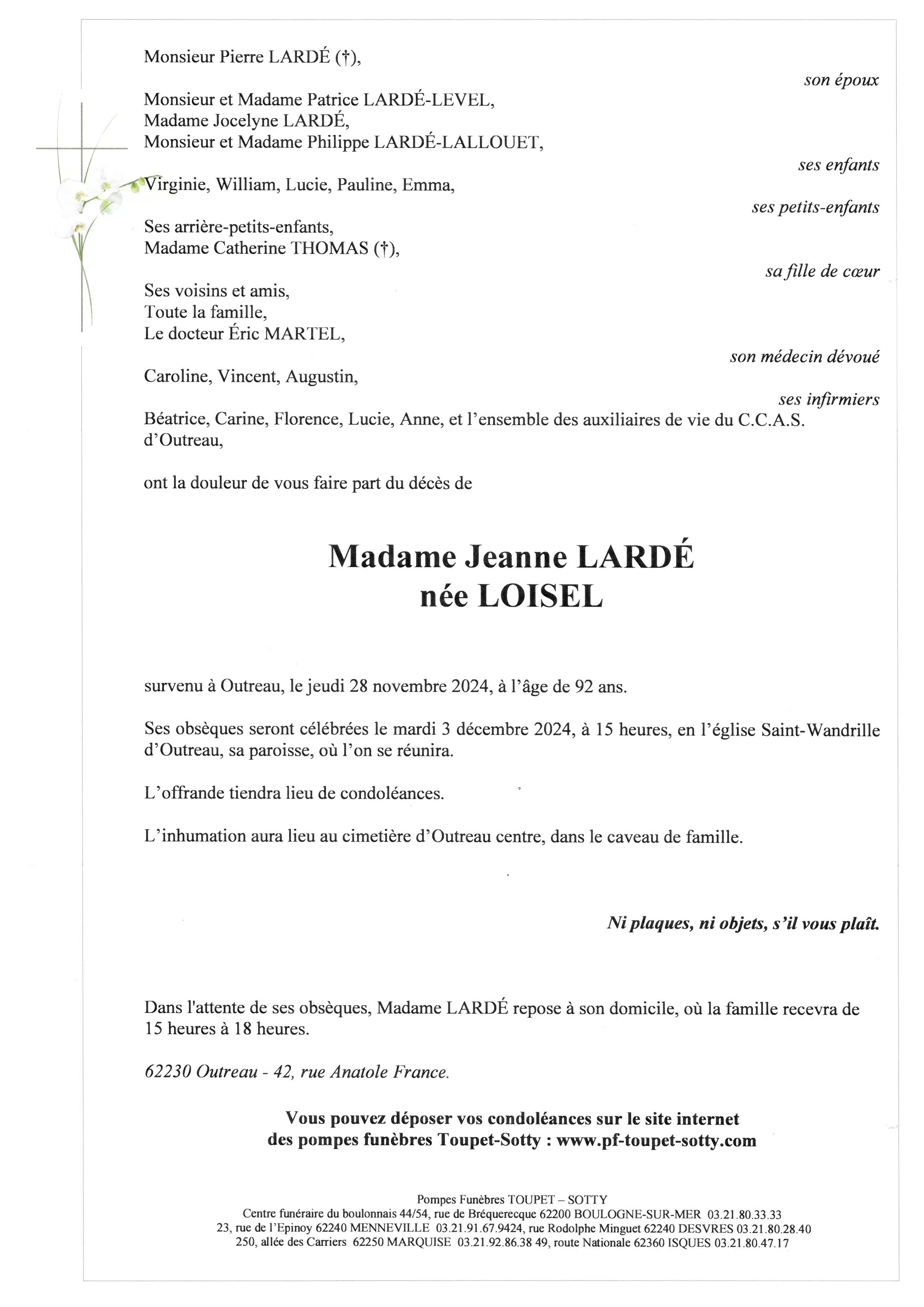 Madame Jeanne LARDÉ