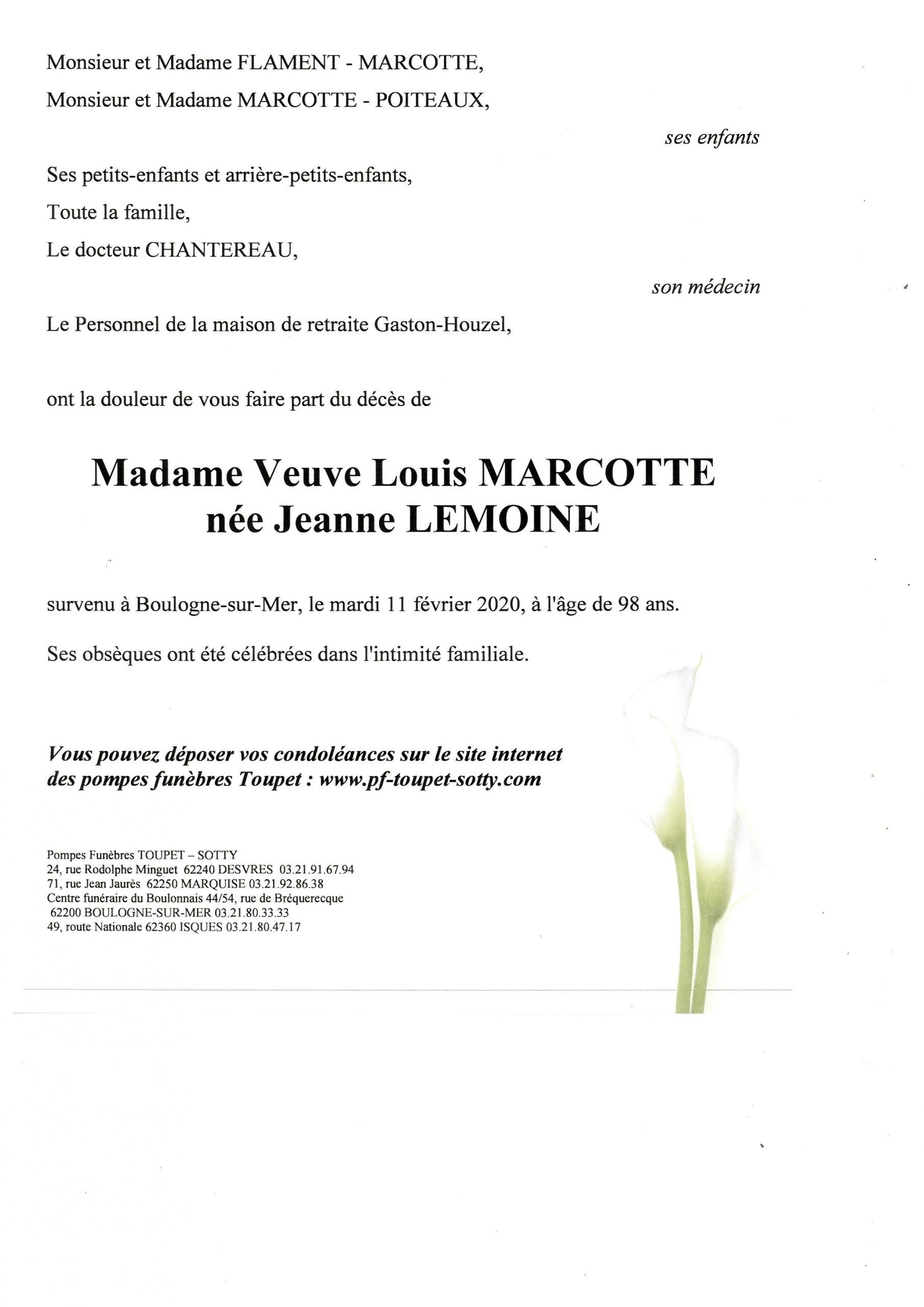 Madame Jeanne LEMOINE veuve Louis MARCOTTE