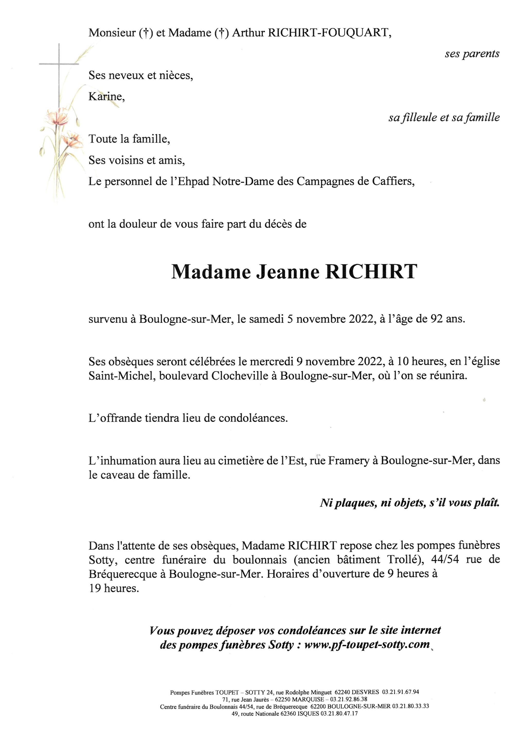 Madame Jeanne RICHIRT