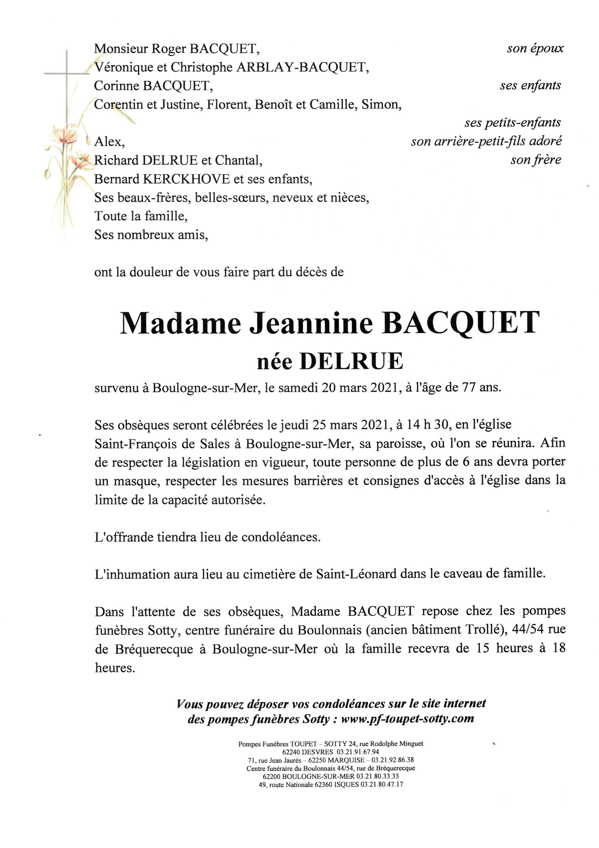 Madame Jeannine BACQUET