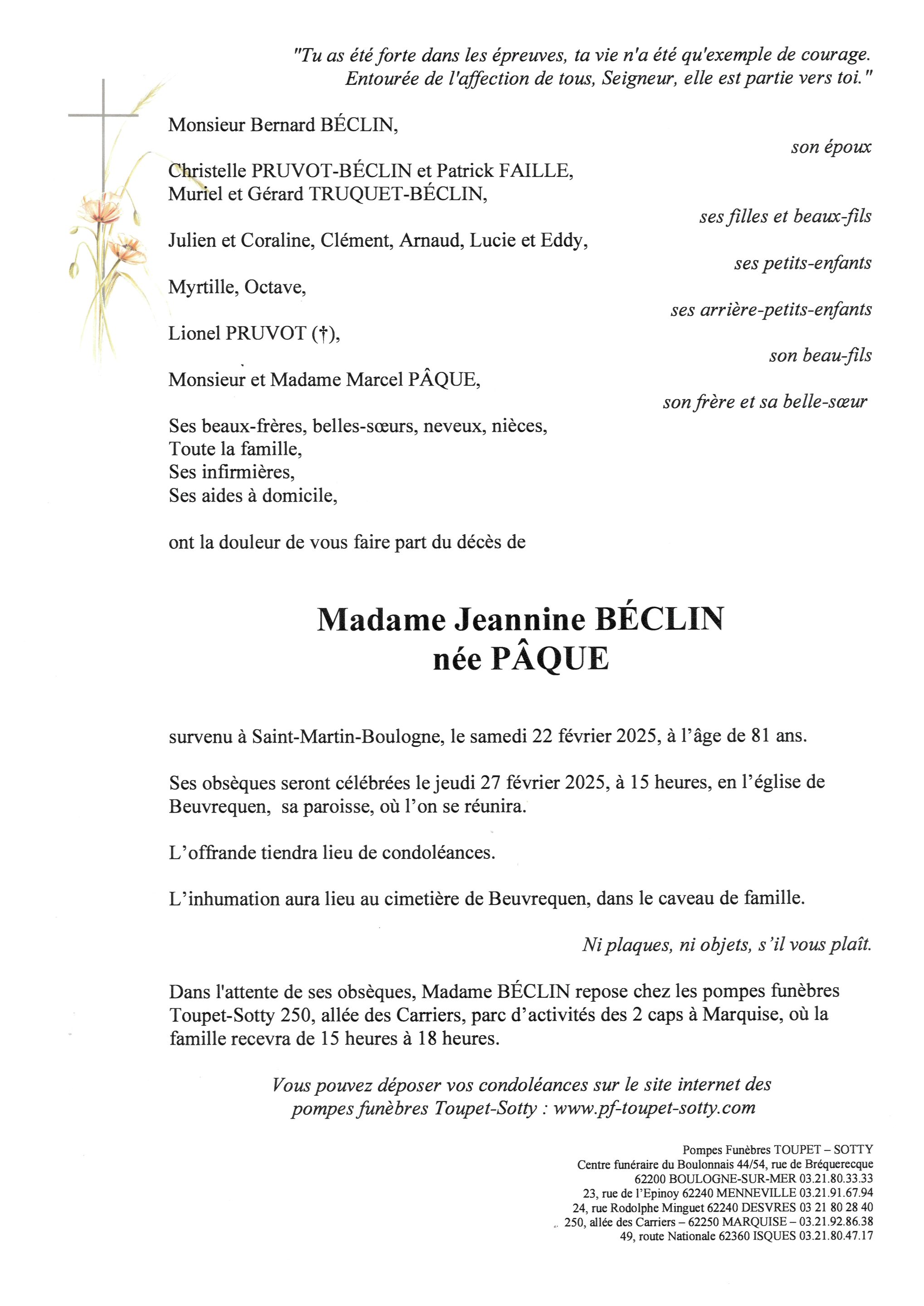 Madame Jeannine BÉCLIN