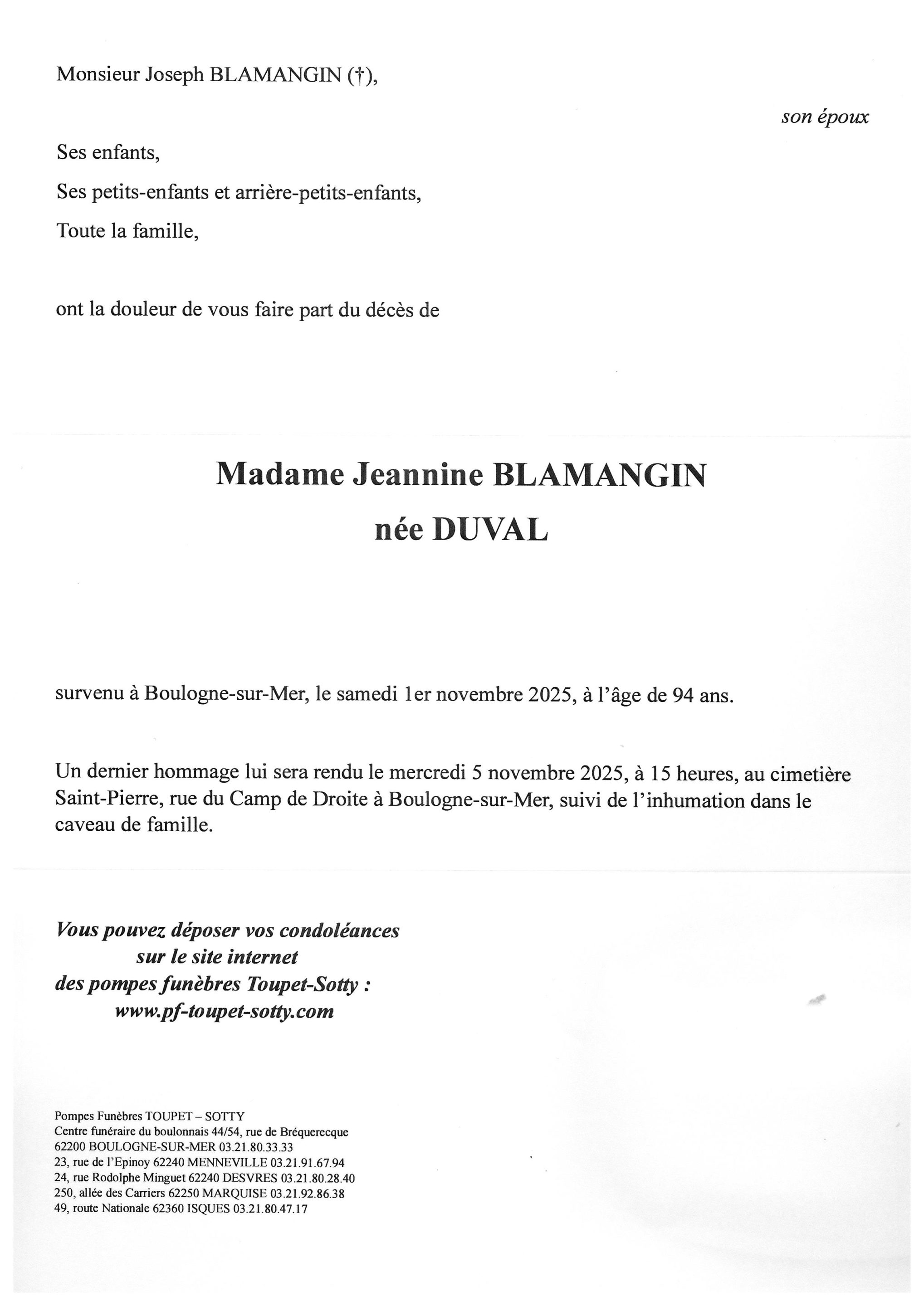 Madame Jeannine BLAMANGIN