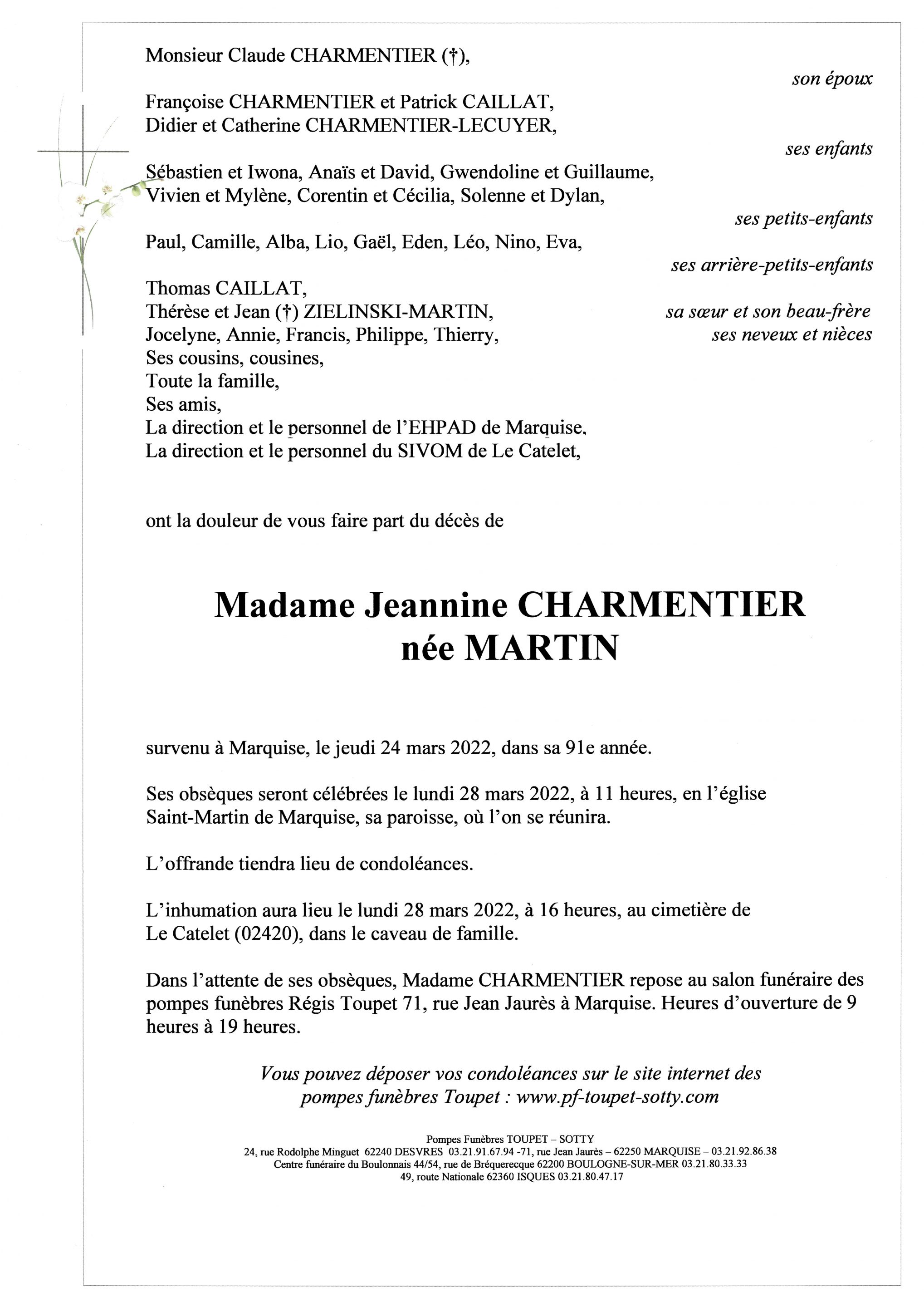 Madame Jeannine CHARMENTIER