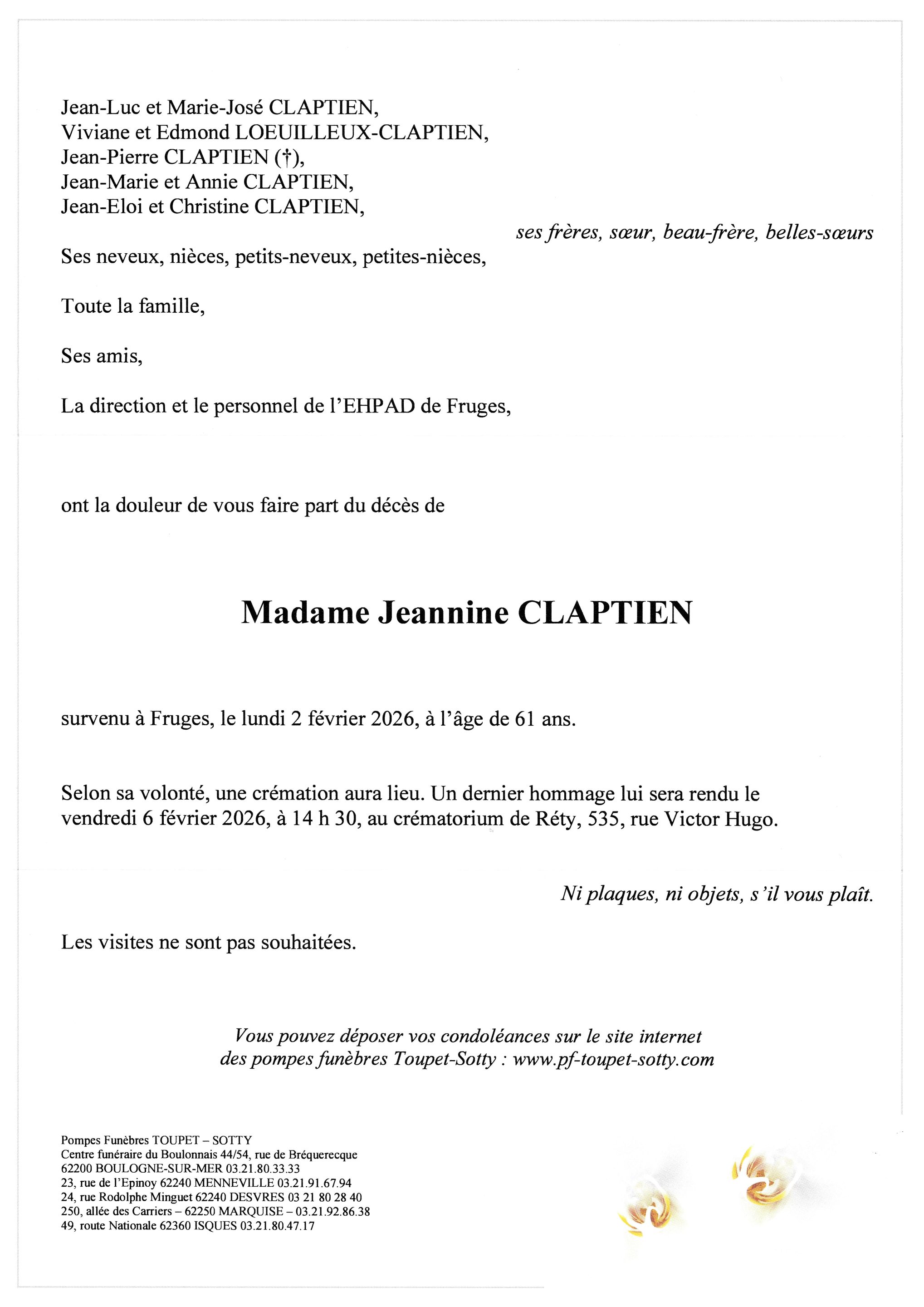 Madame Jeannine CLAPTIEN