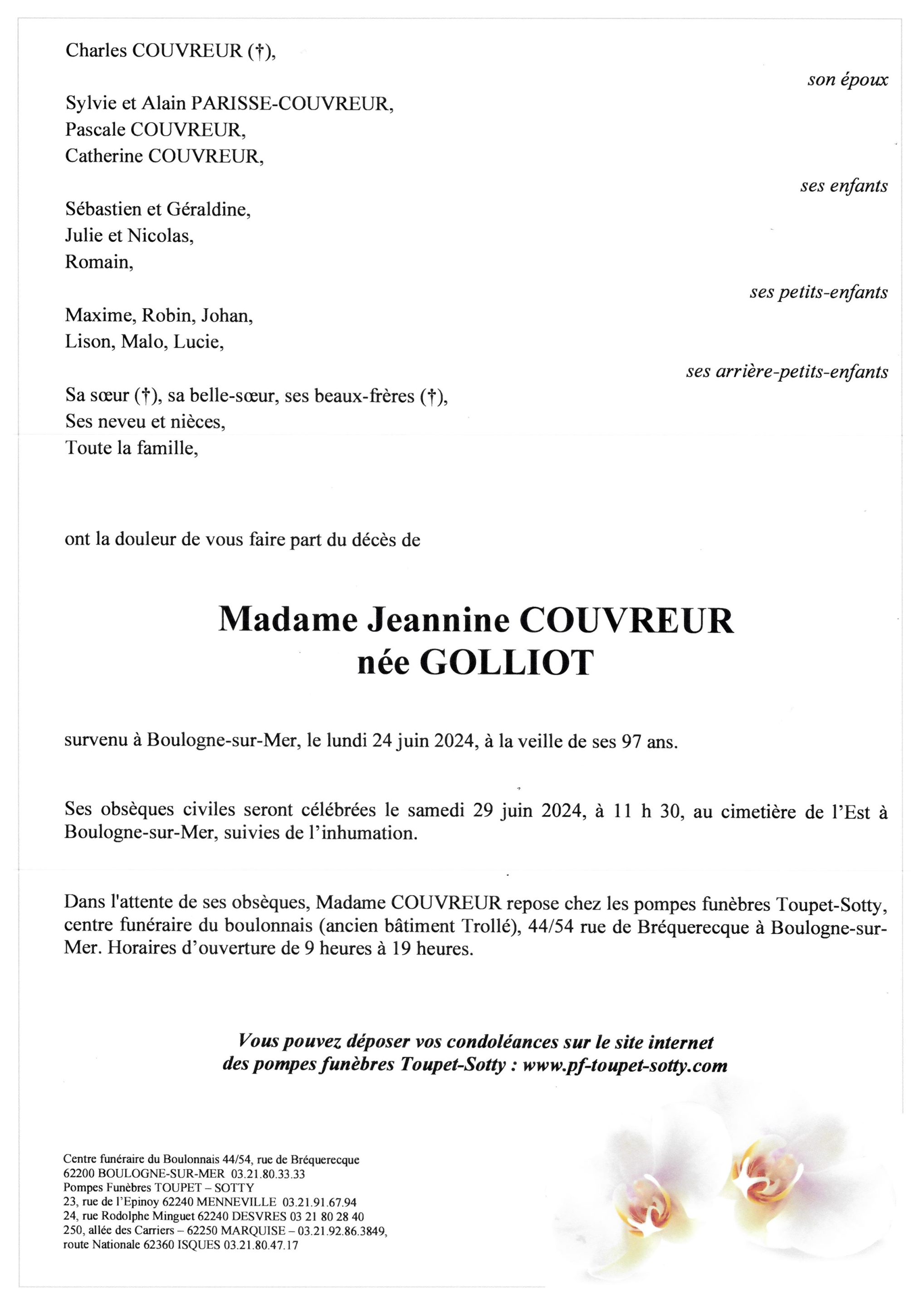 Madame Jeannine COUVREUR