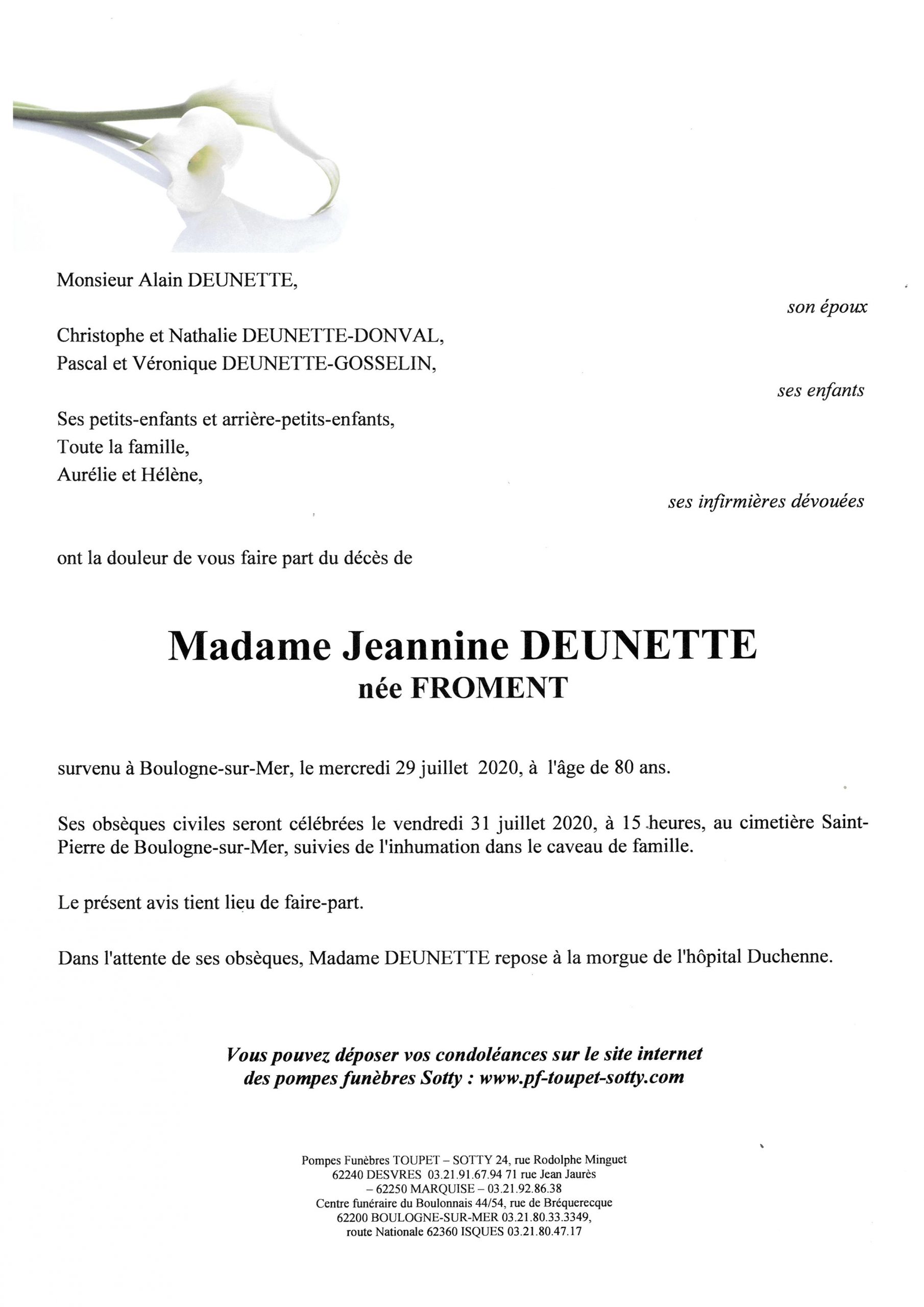 Madame Jeannine DEUNETTE