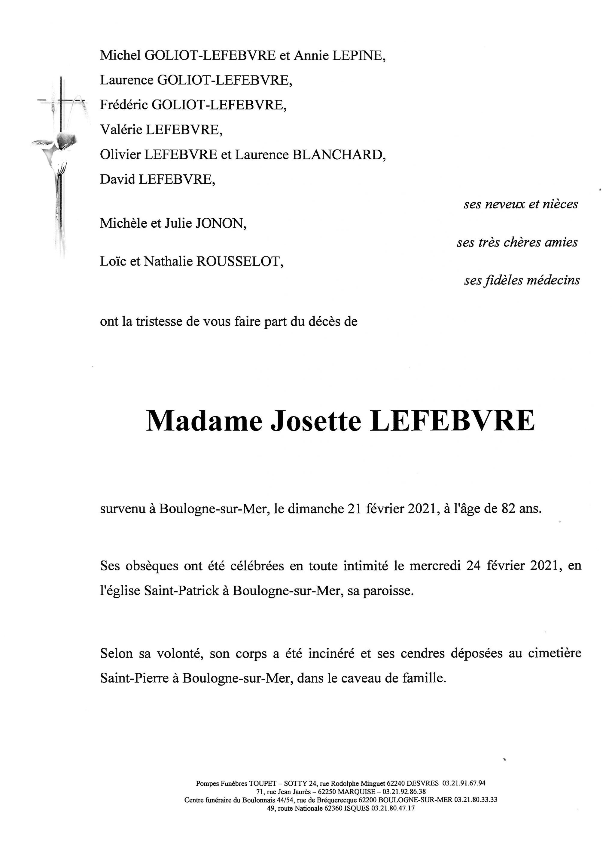 Madame Josette LEFEBVRE