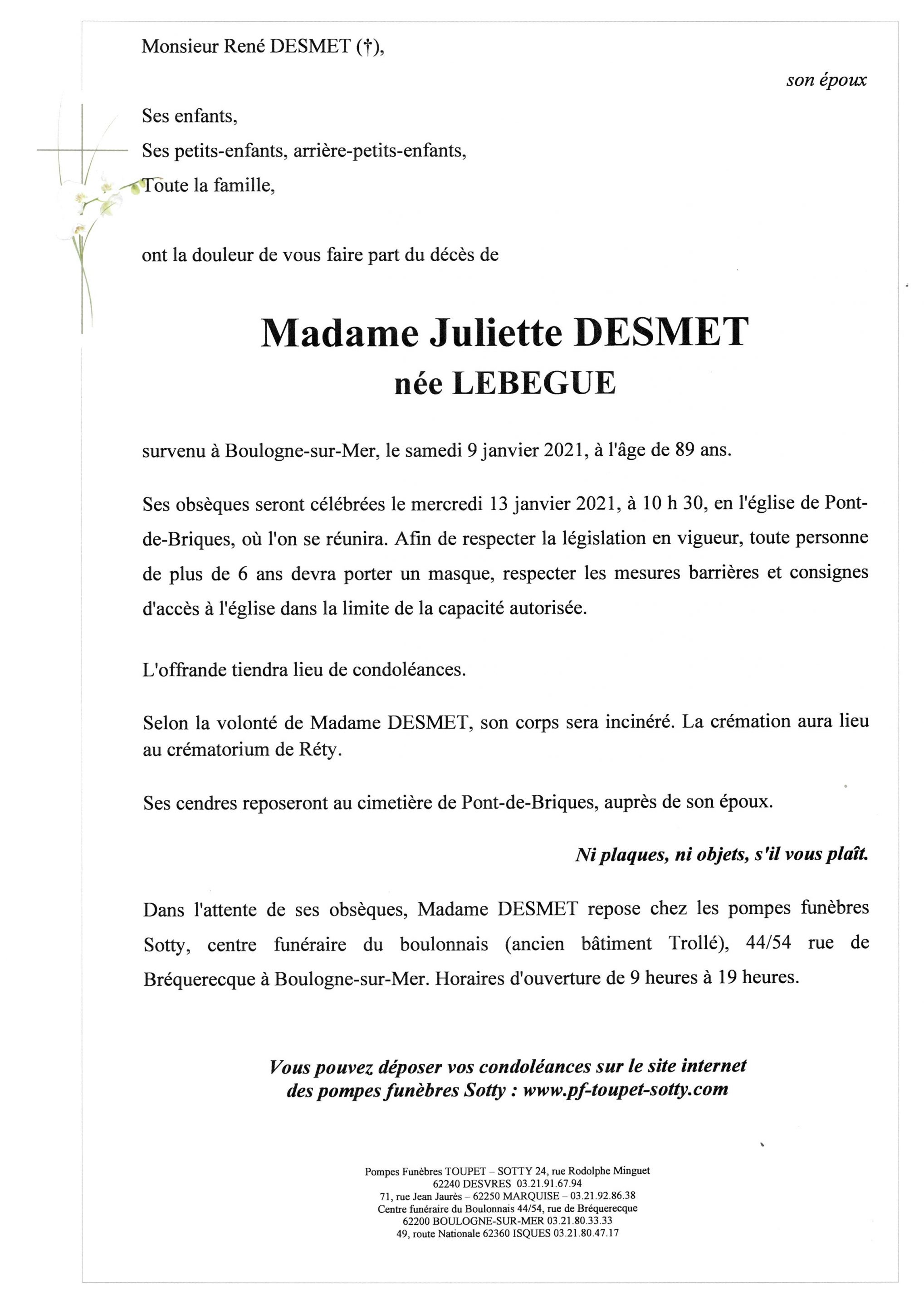 Madame Juliette DESMET