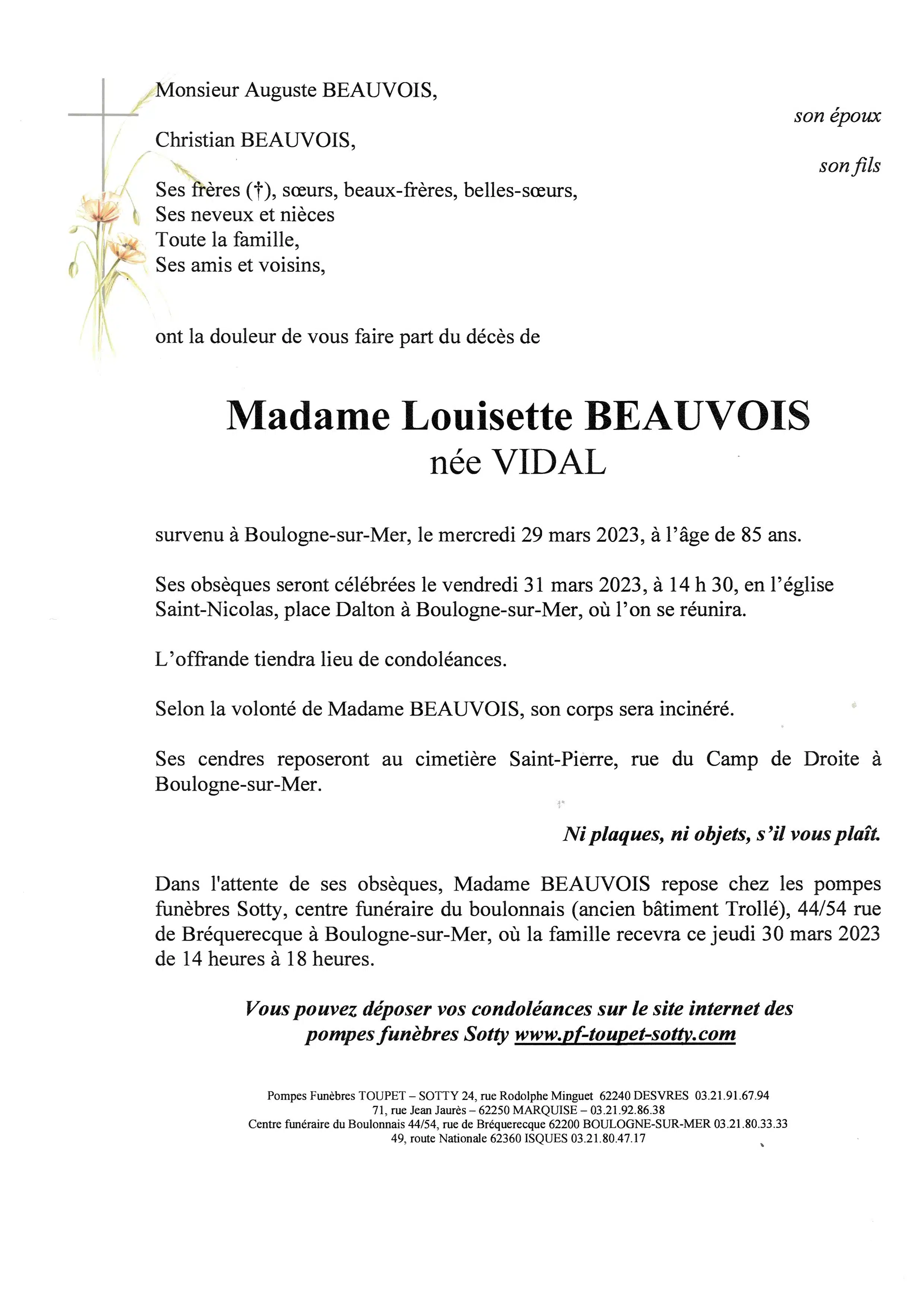 Madame Louisette BEAUVOIS