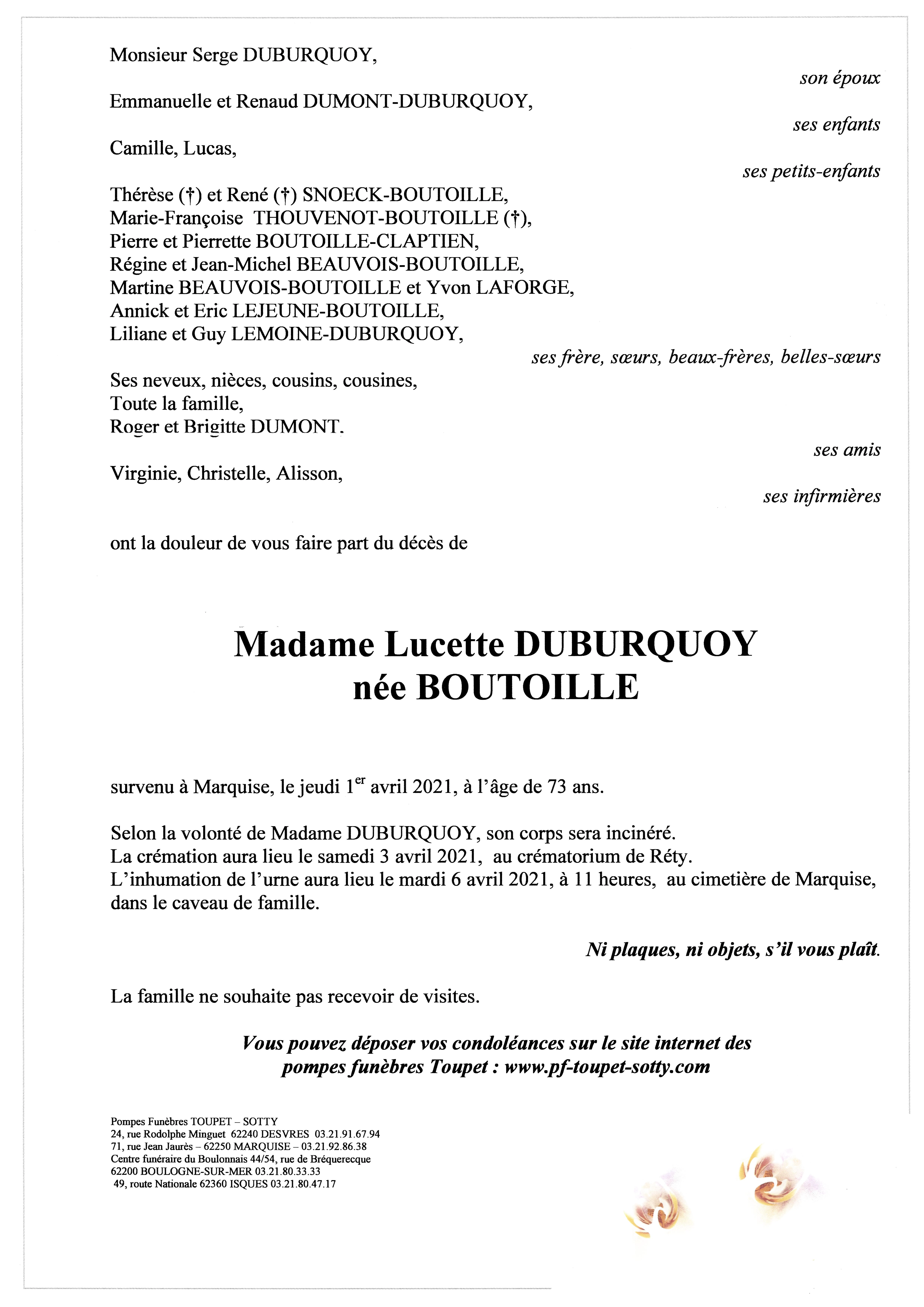 Madame Lucette DUBURQUOY