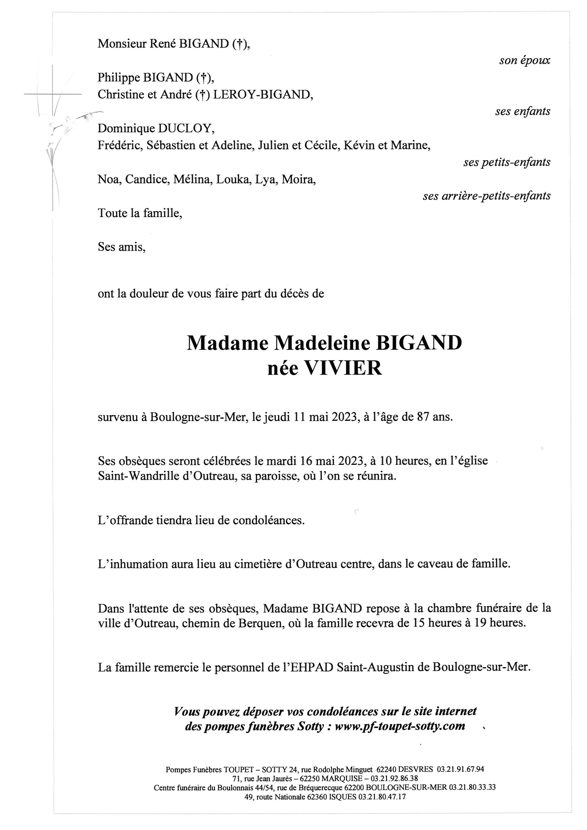 Madame Madeleine BIGAND
