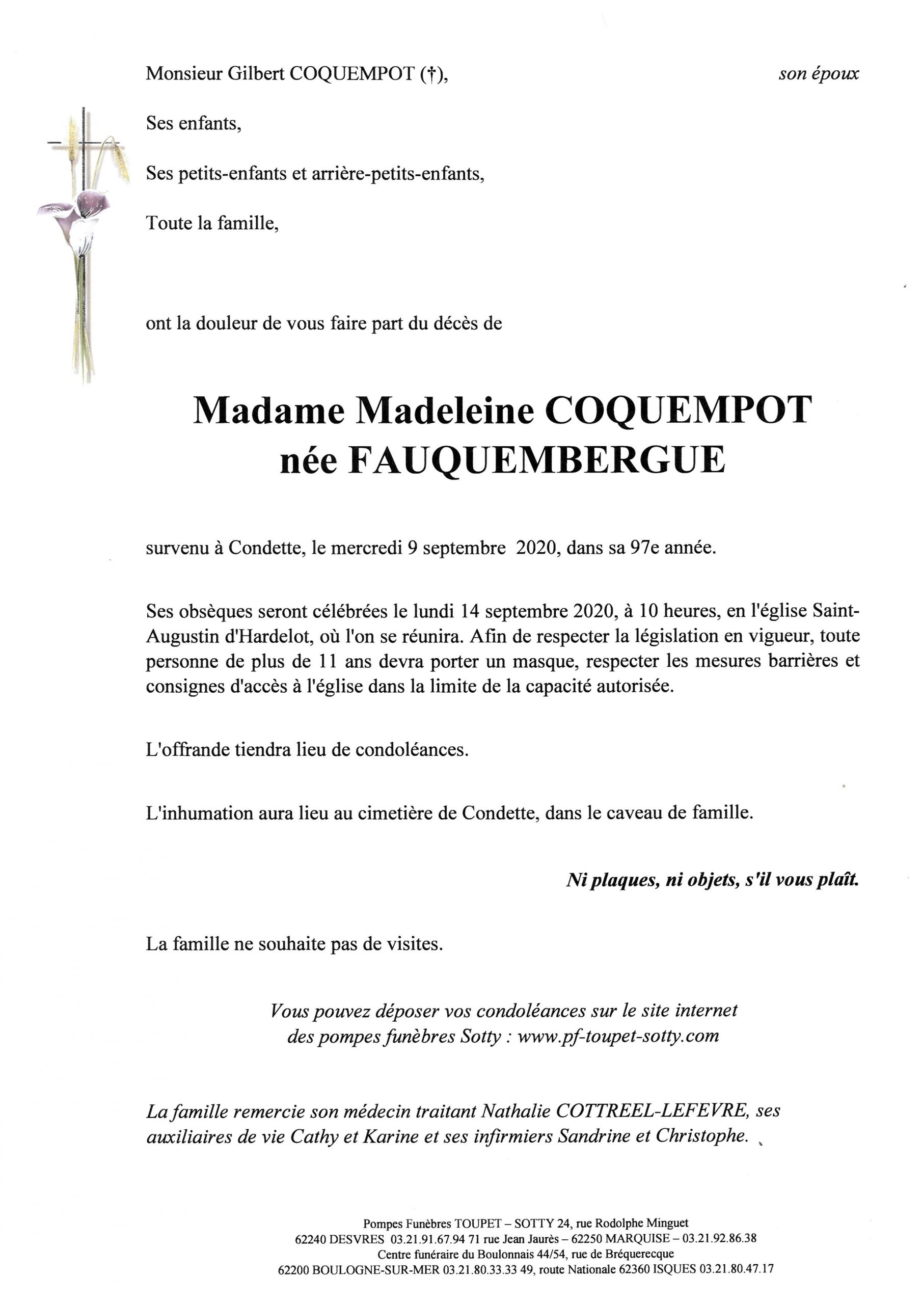 Madame Madeleine COQUEMPOT