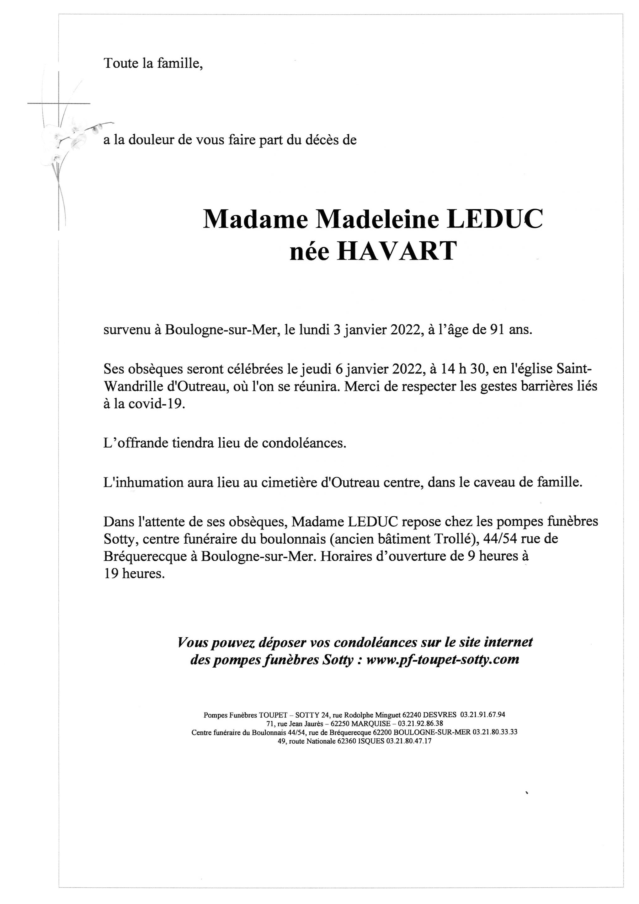 Madame Madeleine LEDUC