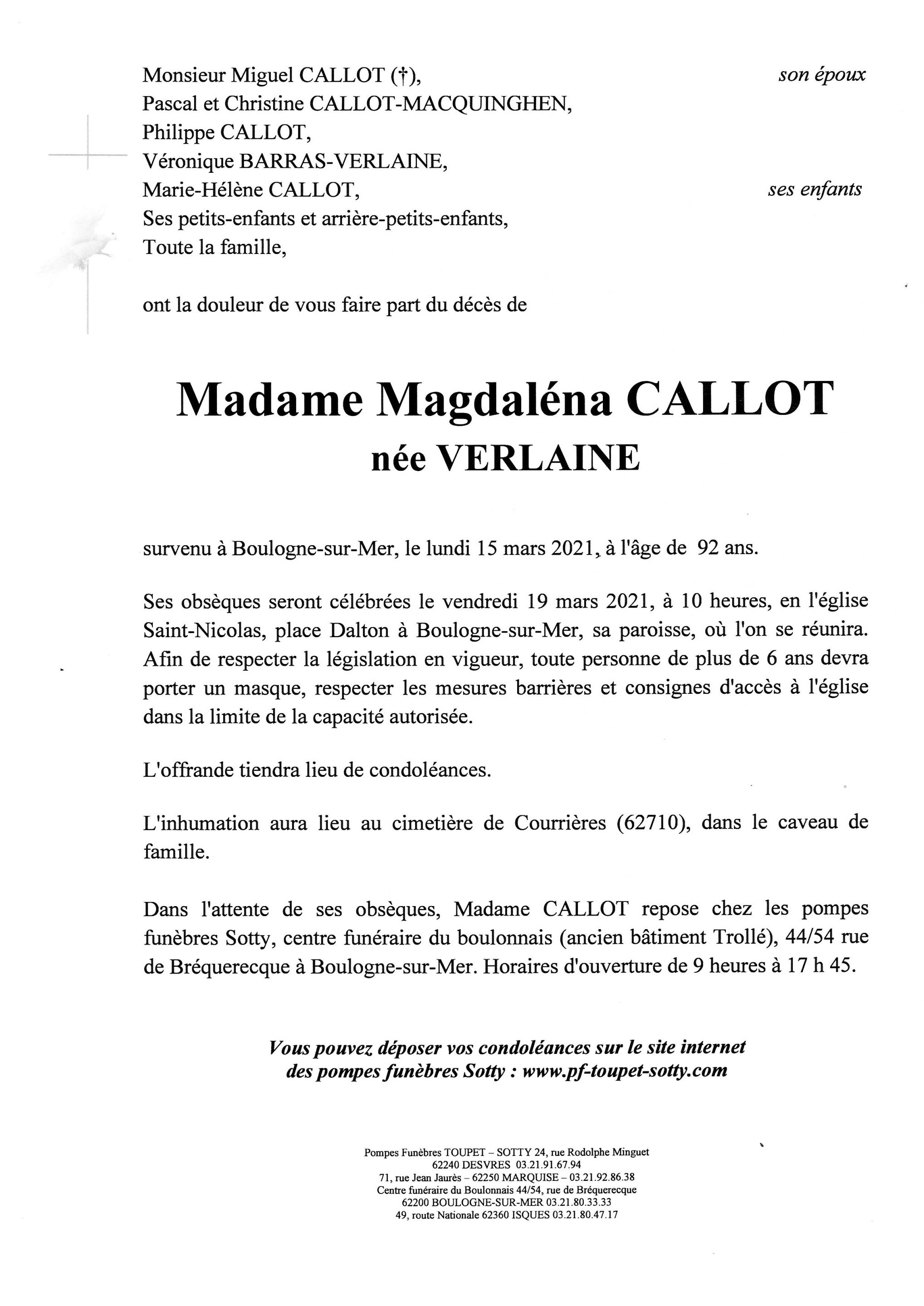 Madame Magdaléna CALLOT