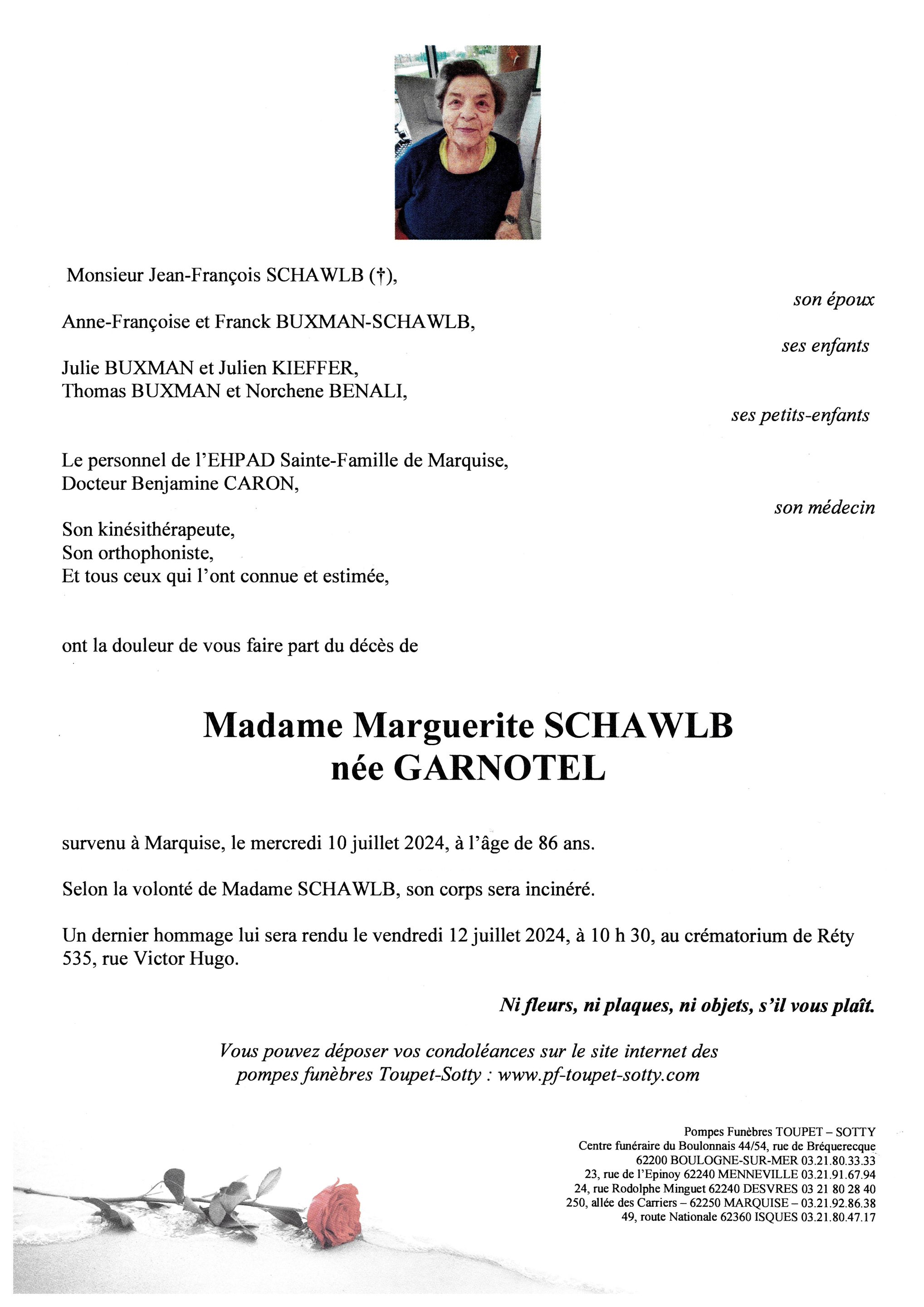 Madame Marguerite SCHAWLB