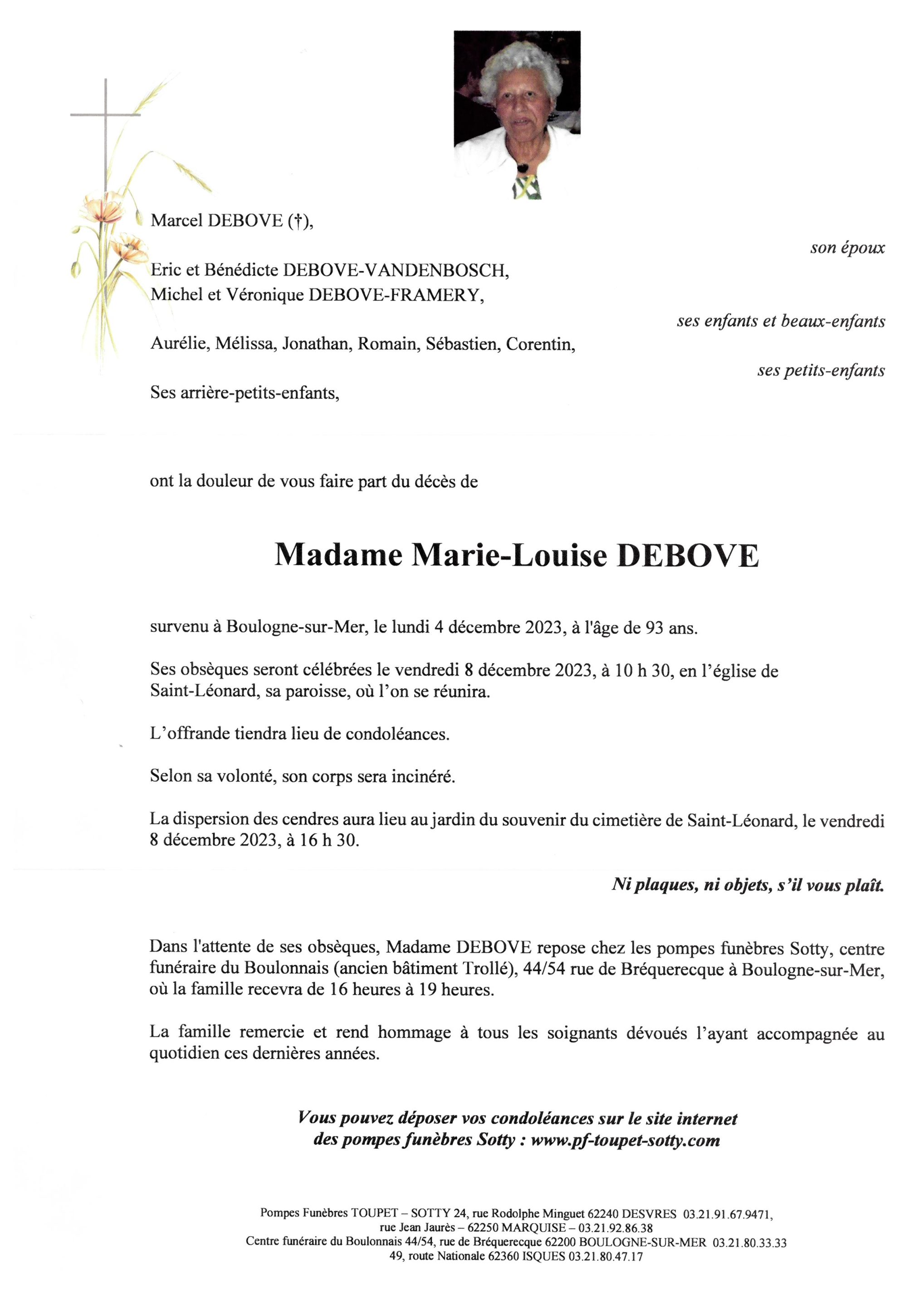 Madame Marie-Louise DEBOVE