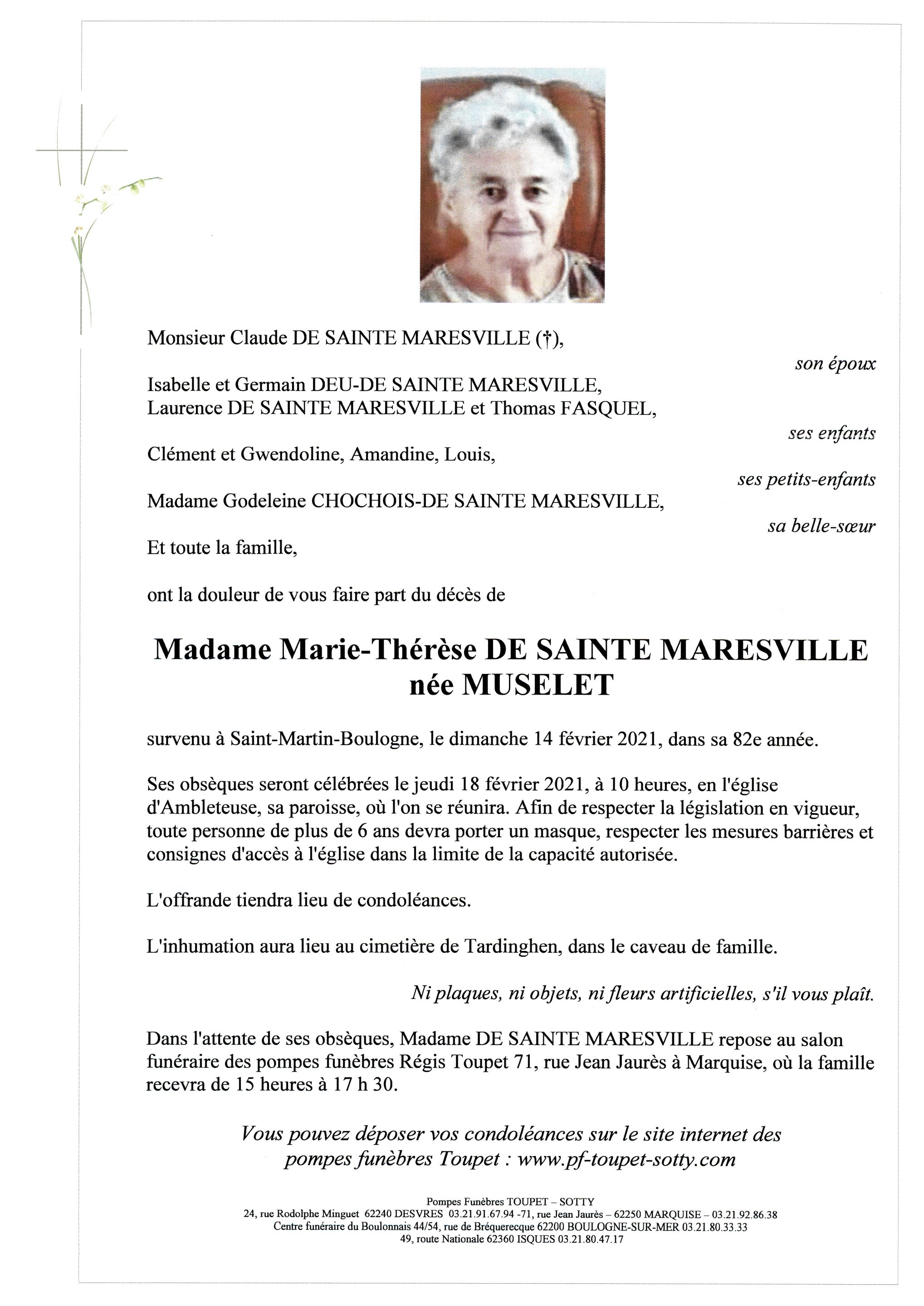 Madame Marie-Thérèse DE SAINTE MARESVILLE