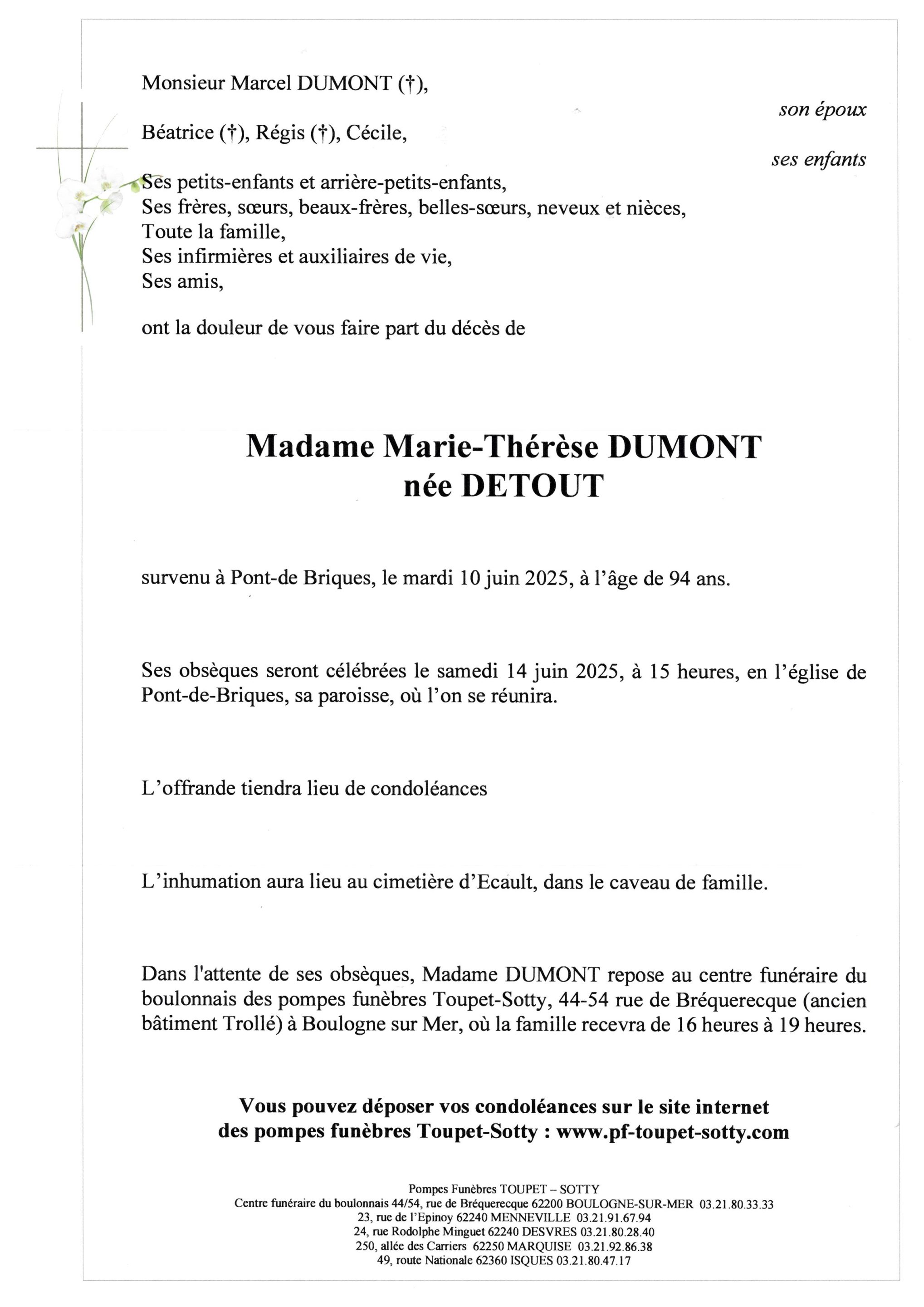 Madame Marie-Thérèse DUMONT
