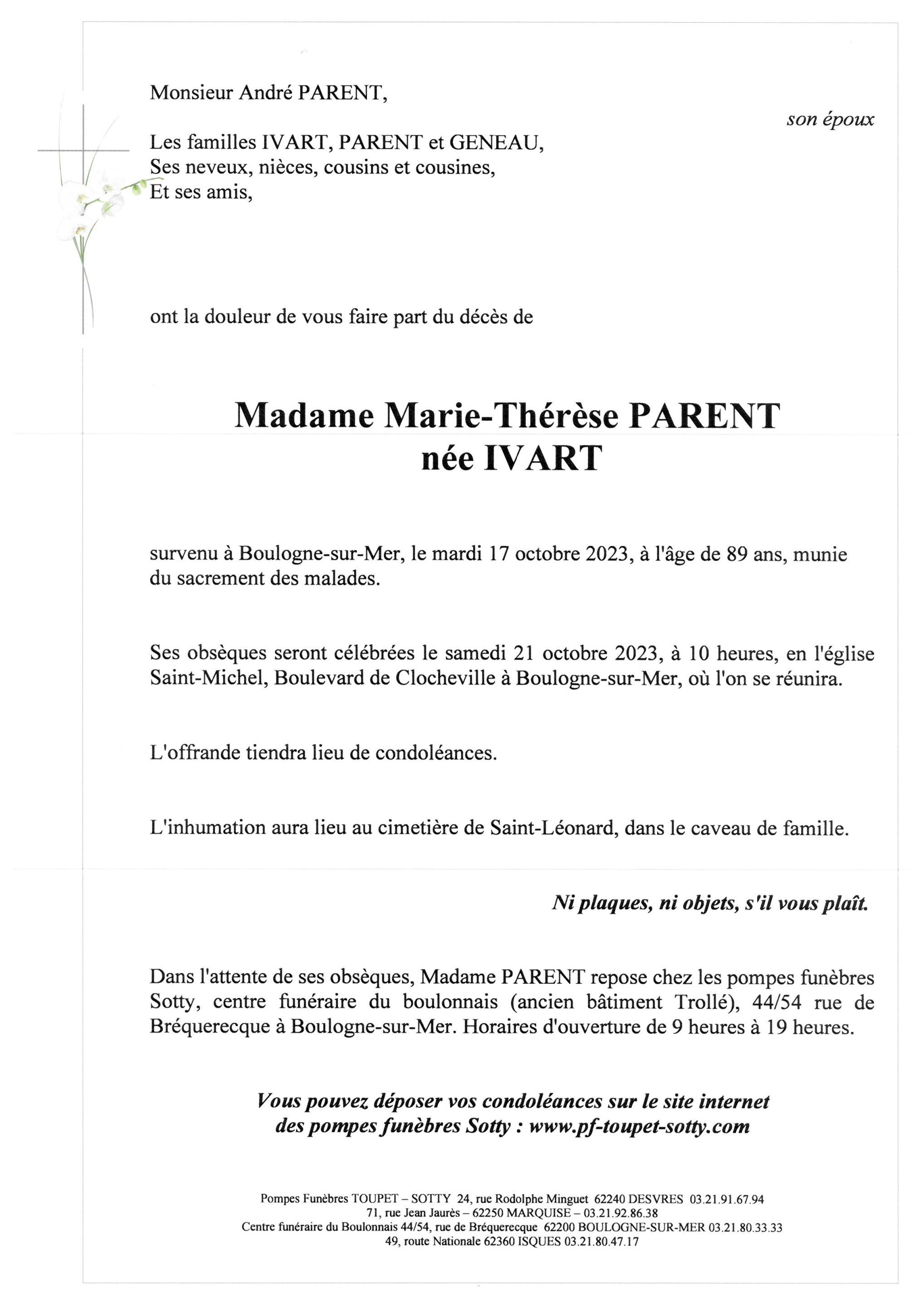 Madame Marie-Thérèse PARENT