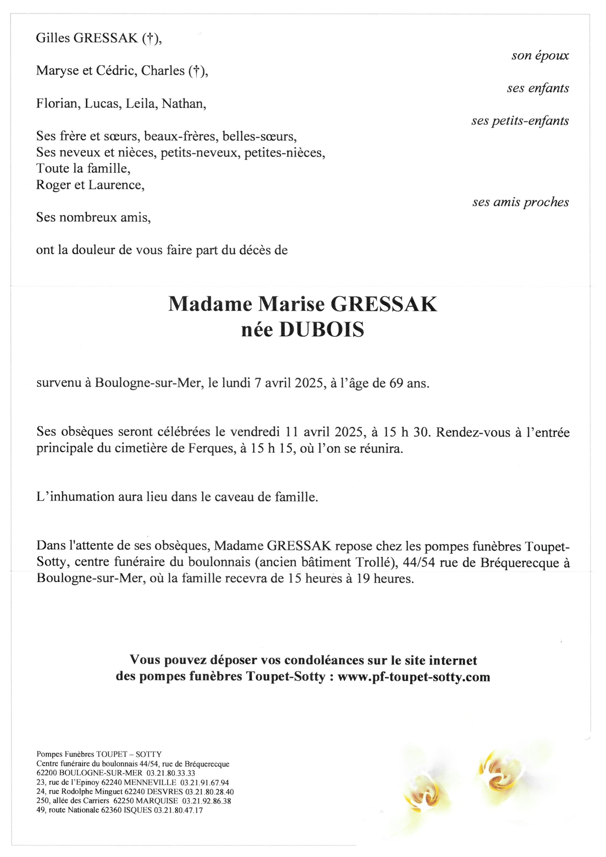 Madame Marise GRESSAK
