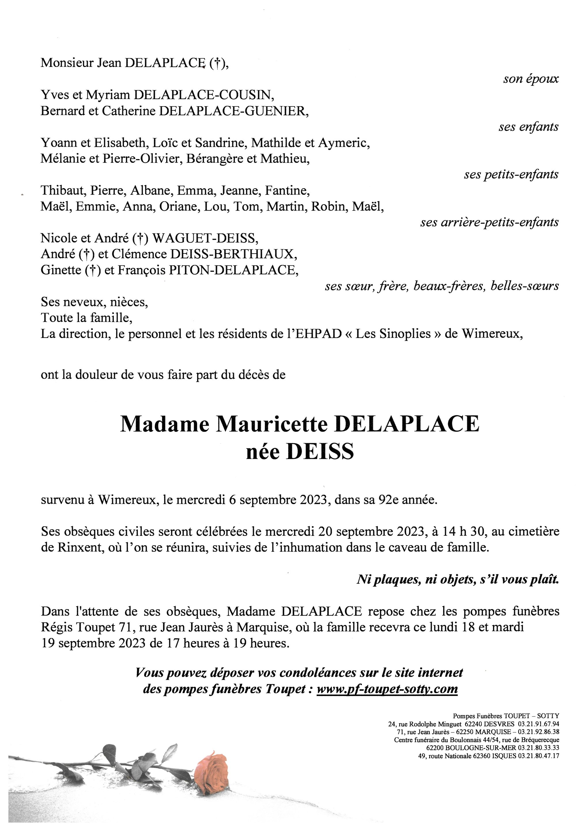 Madame Mauricette DELAPLACE