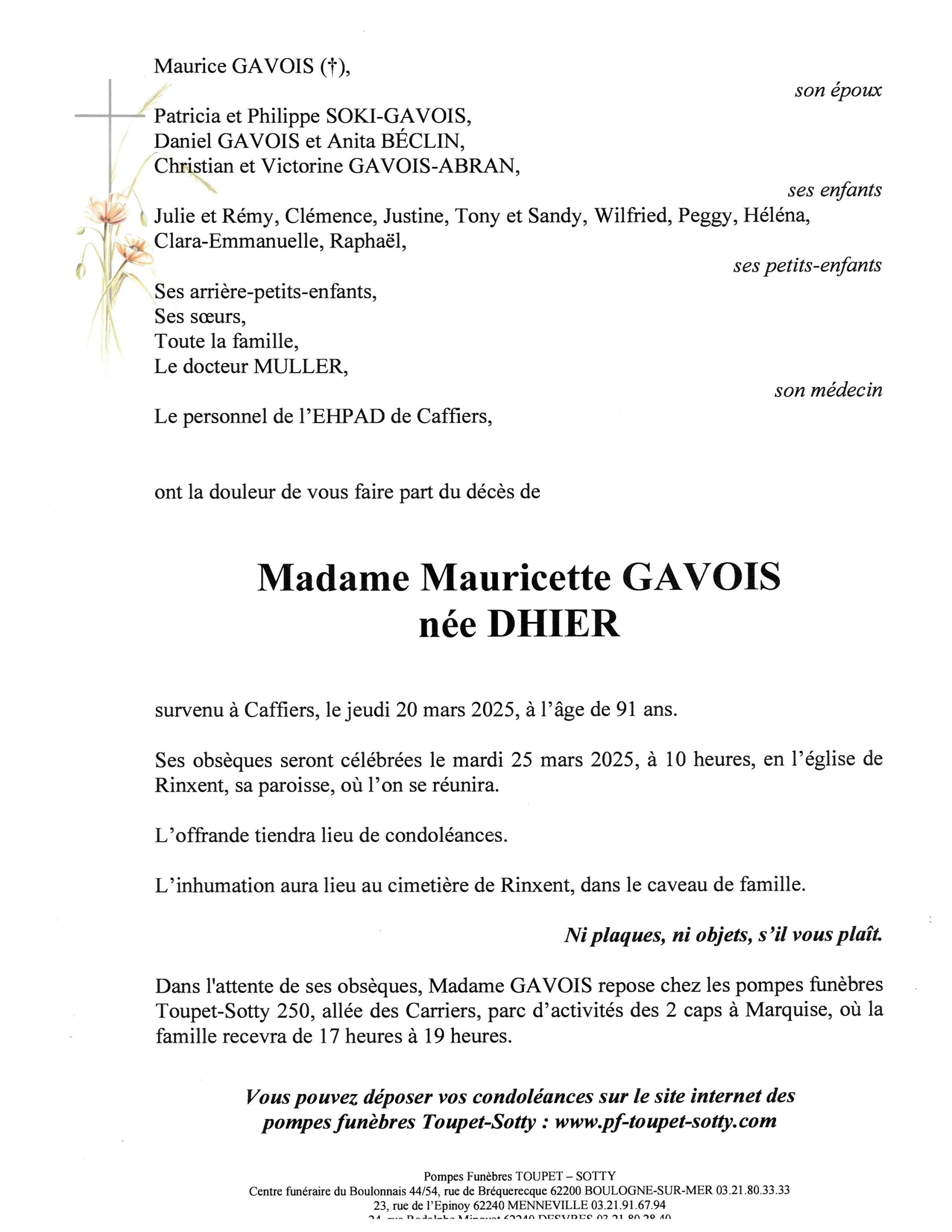 Madame Mauricette GAVOIS