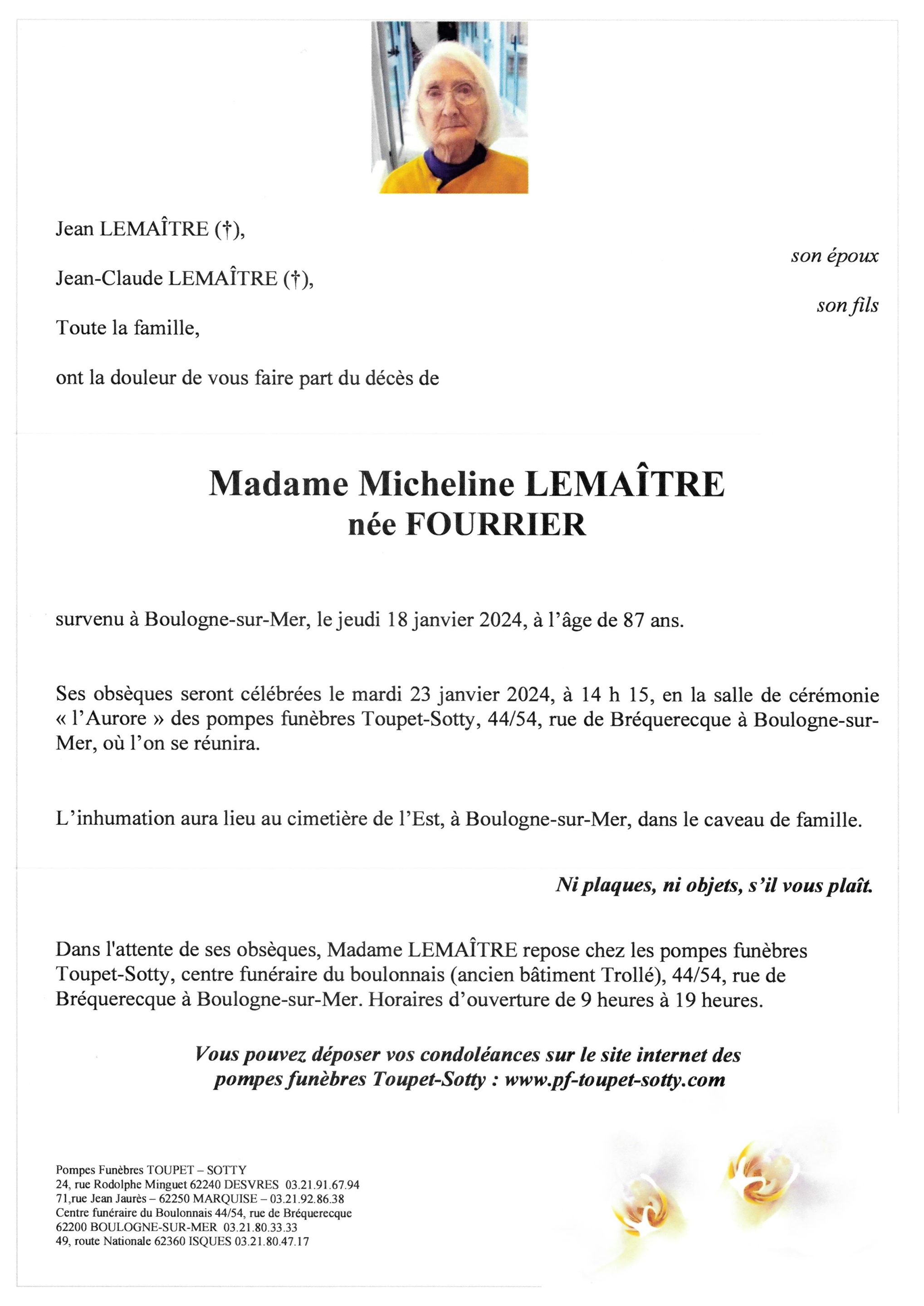 Madame Micheline LEMAÎTRE